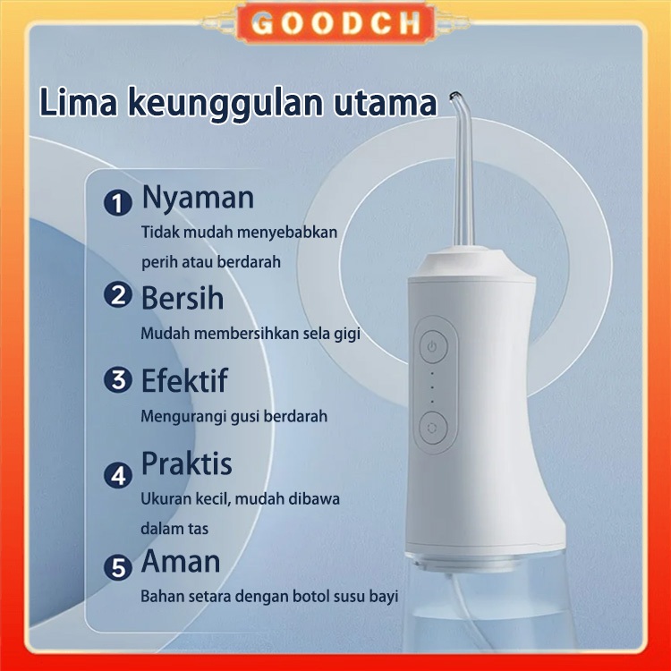 GOODCH Portable Water Flosser Gigi 300ML Large Capacity Water Tank Water Flosser Oral Lrrigator Pembersih Gigi 3 Modes Type C USB Rechargeable