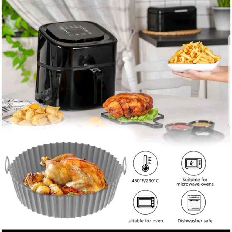 Alas Air Fryer Silikon tahan panas Tray Multifungsi / SILICONE Air Fryer Silicone Pot Silikon Bowl Wadah Tray Nampan Baking Cooking / kertas air fryer / alas air fryer silikon BPA FREE Y02