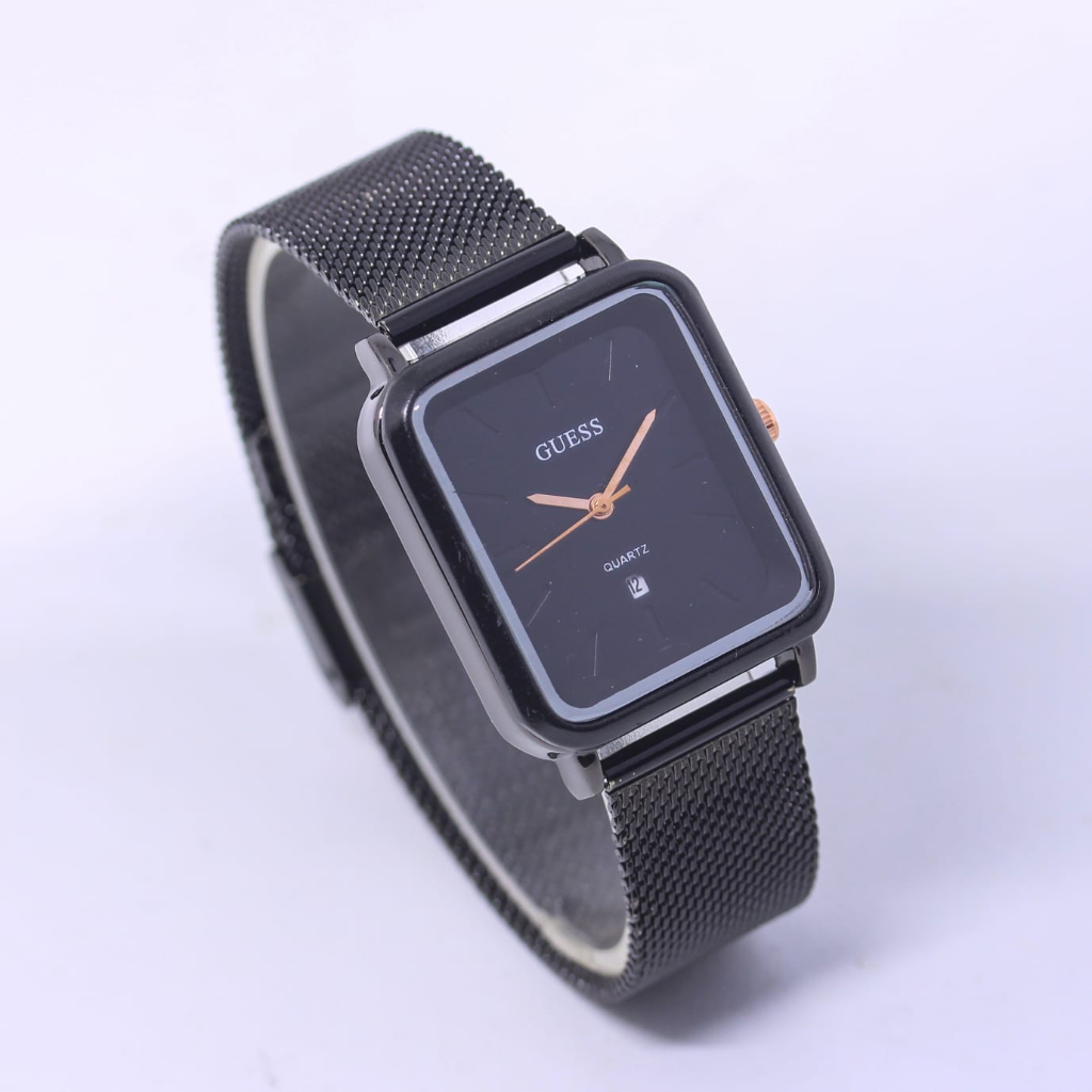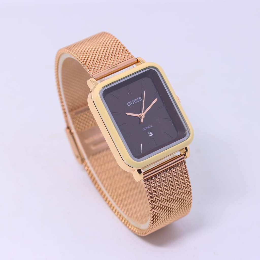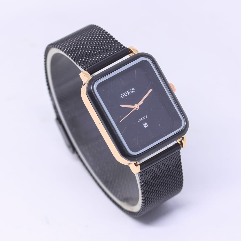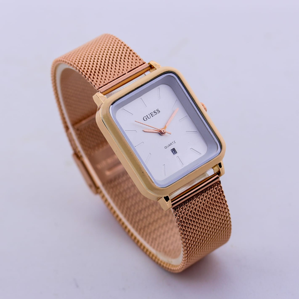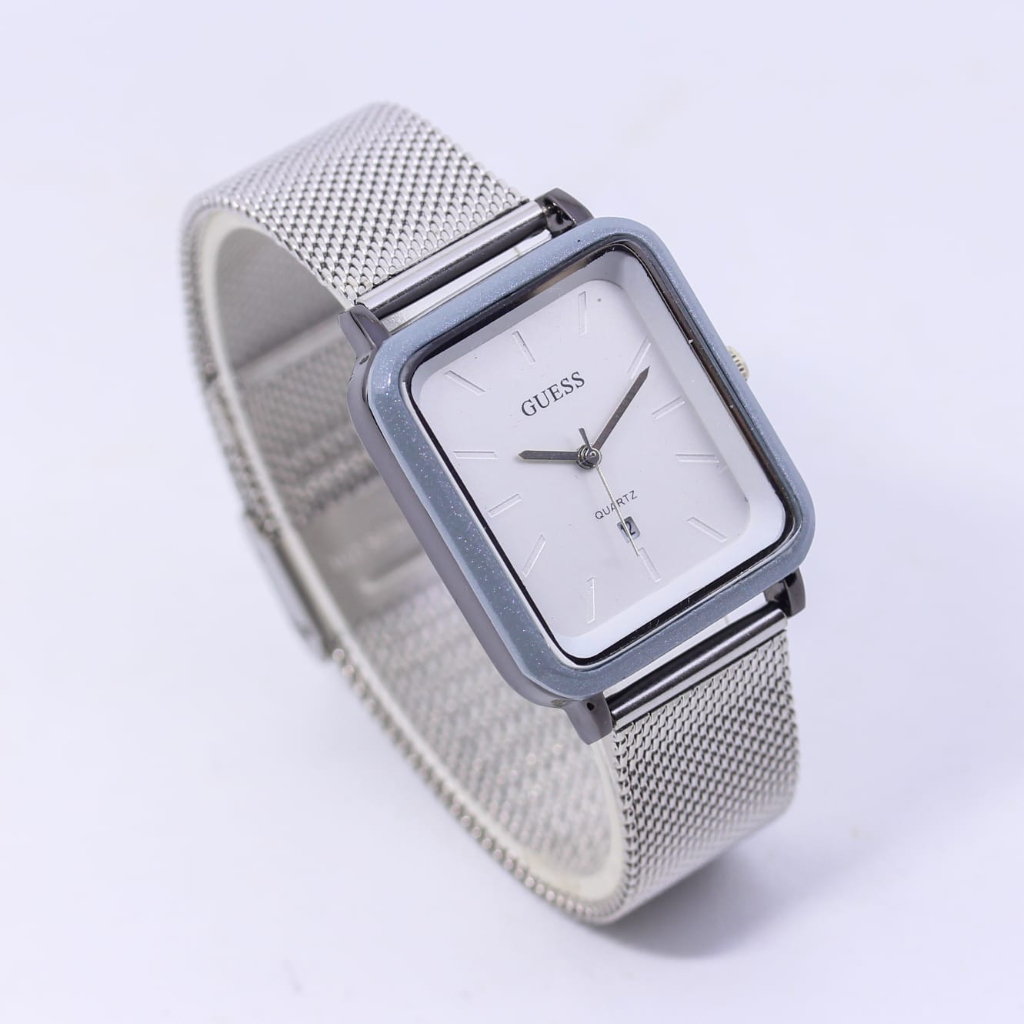 {COD✔️} PREMIUM Jam Tangan Fashion Wanita GUES5 775 Strap Rantai Pasir - Tanggal Aktif - jam tangan simple cewek tali pasir terbaru !! HUX EVY