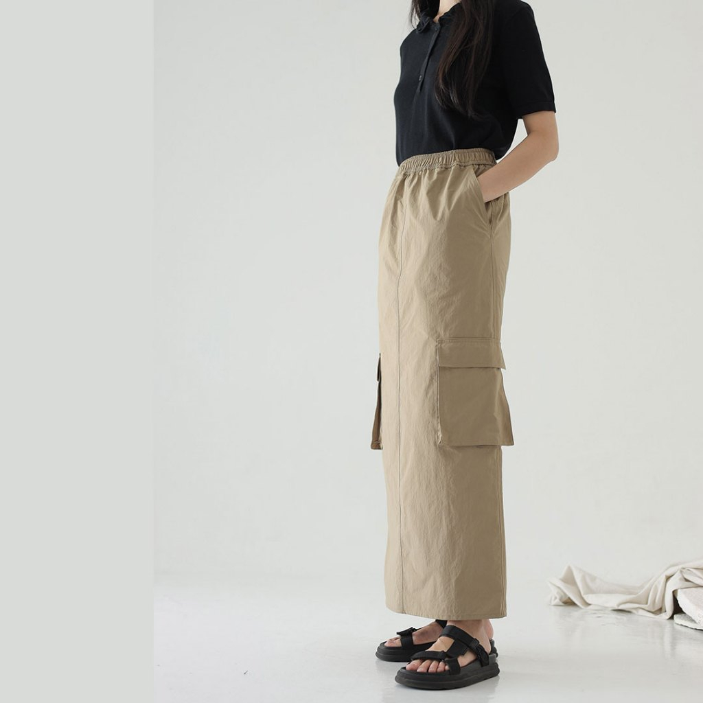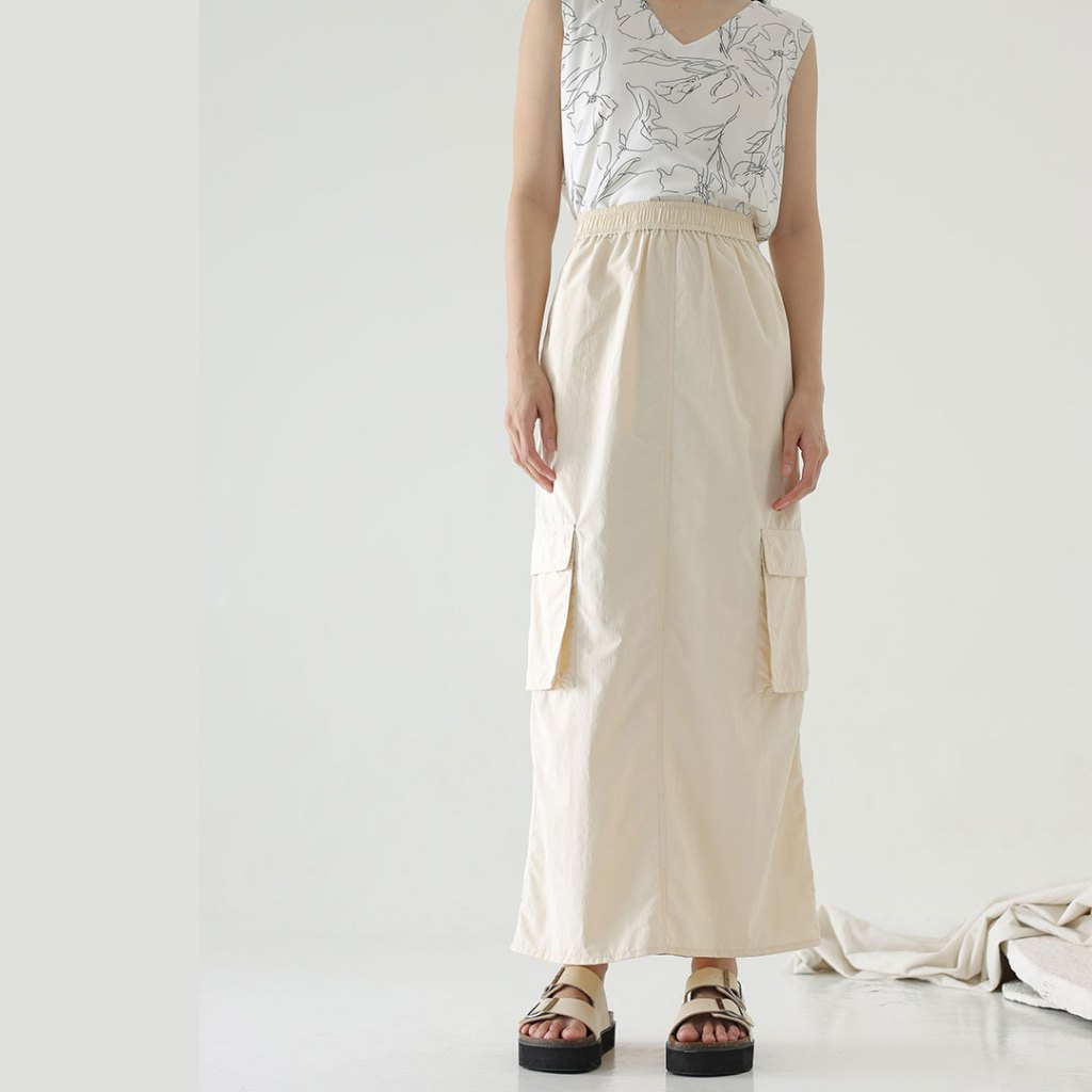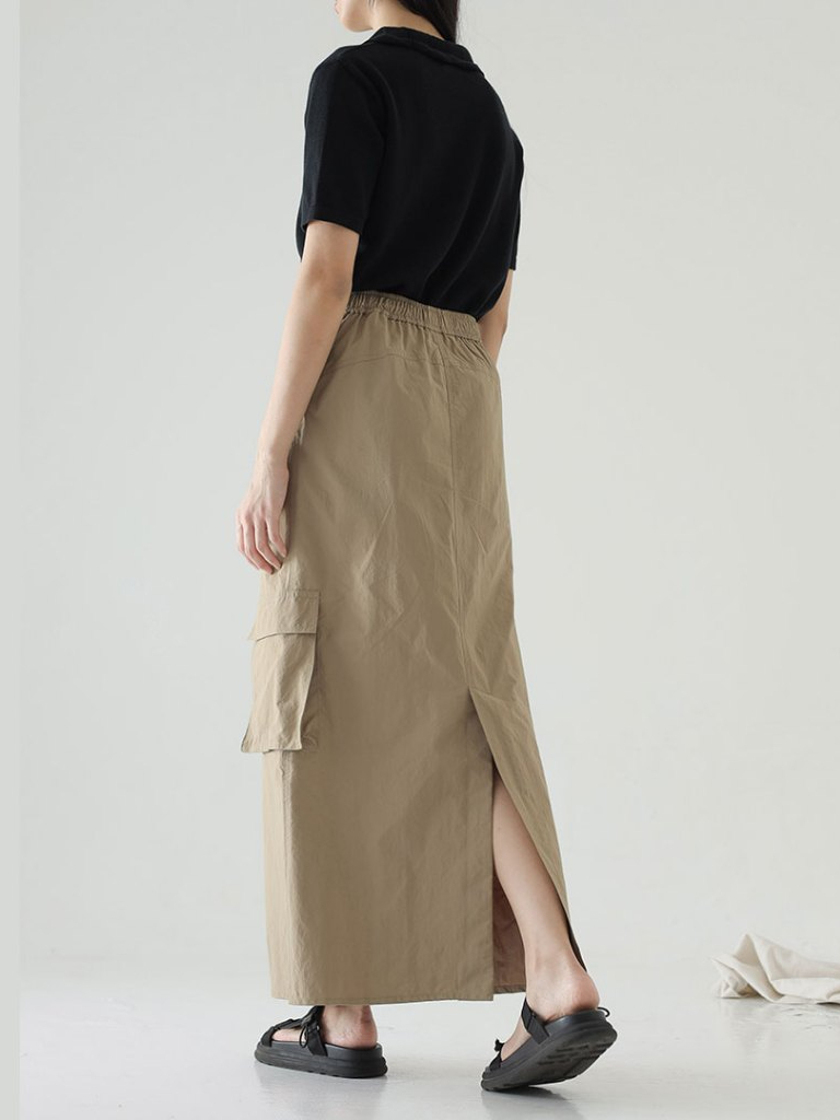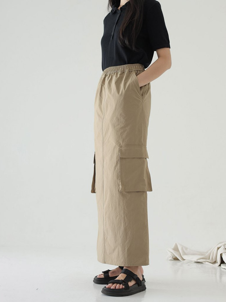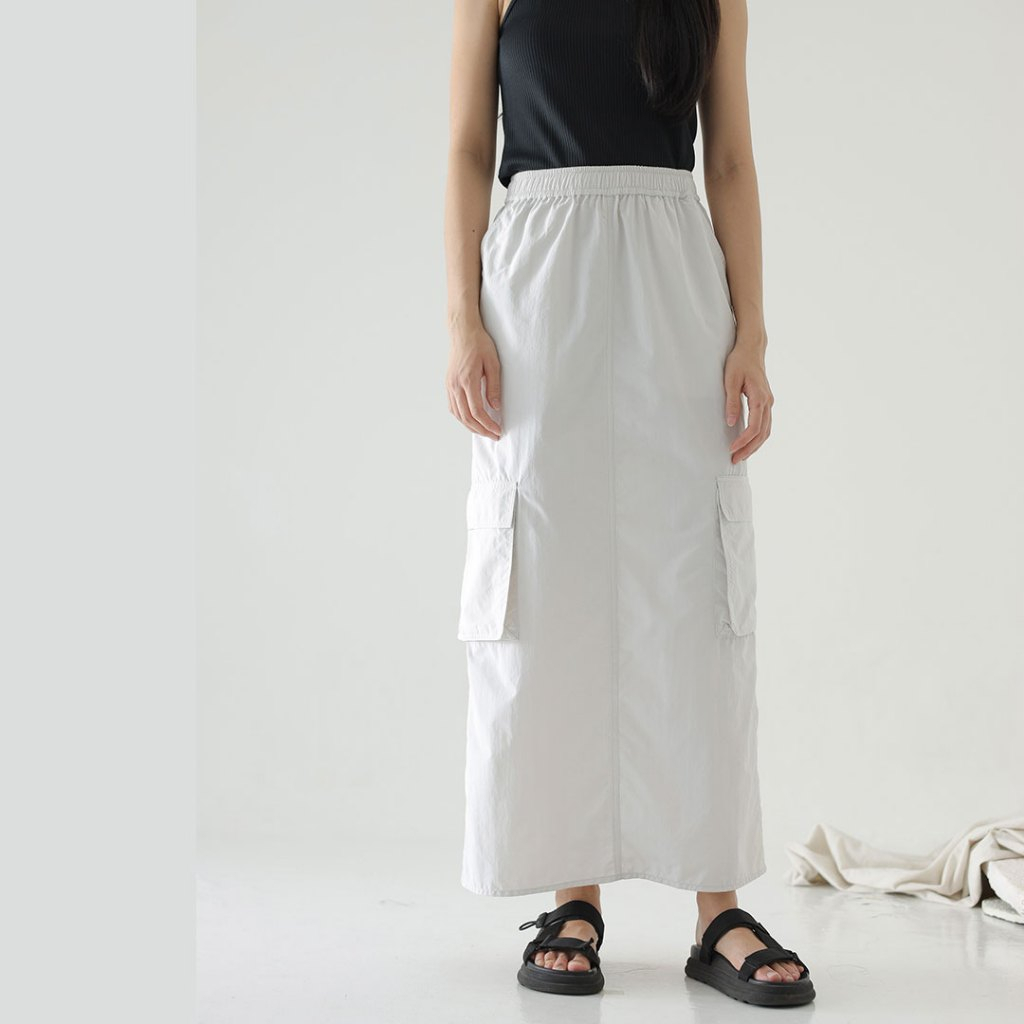 InKano Delft Maxi Cargo Skirt - Cargo skirt wanita dengan pinggang karet dan kantong rok kargo wanita