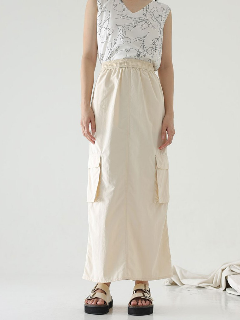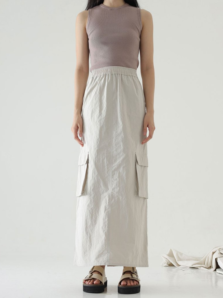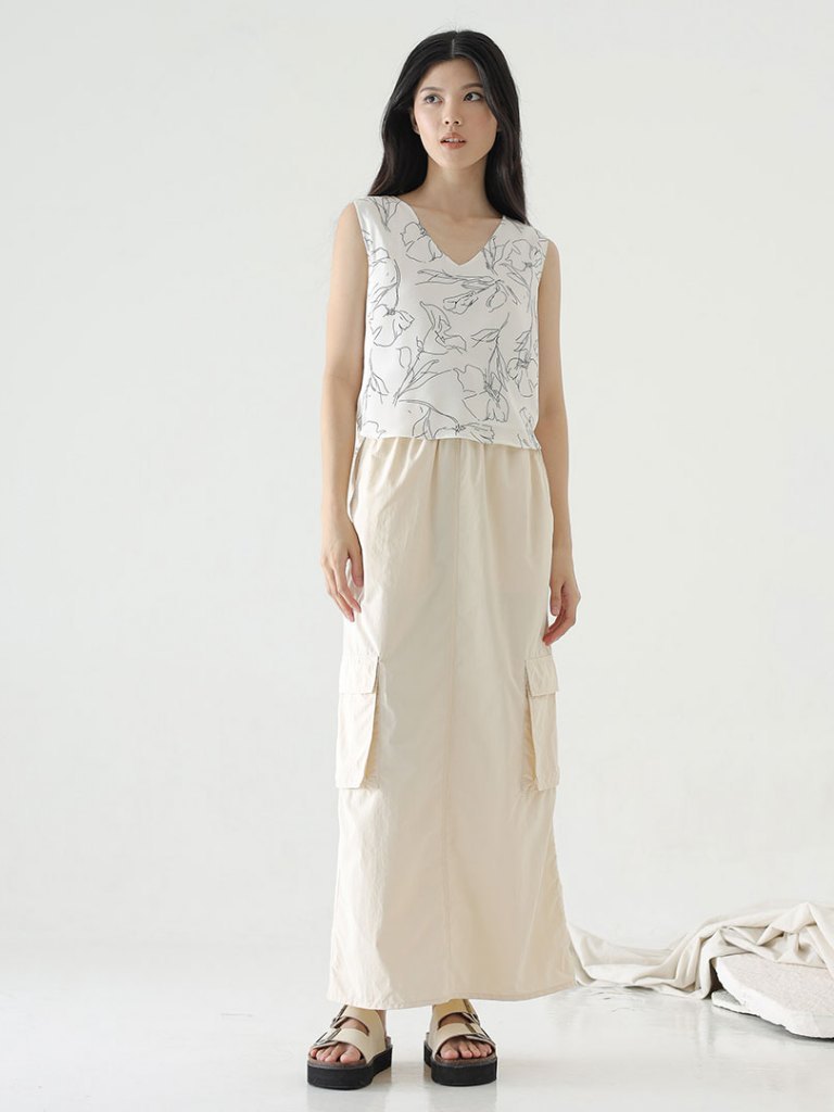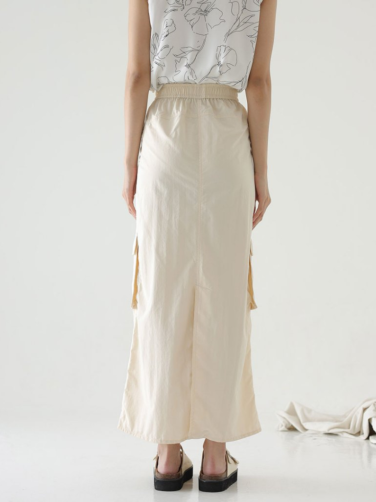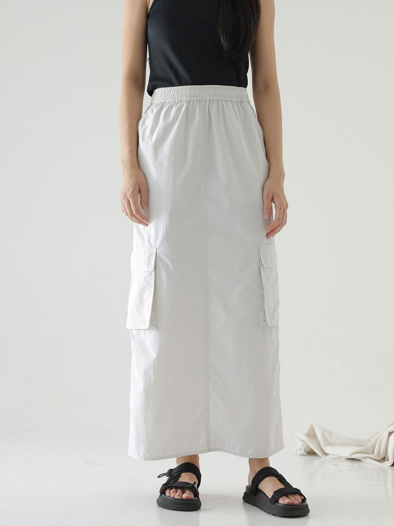 InKano Delft Maxi Cargo Skirt - Cargo skirt wanita dengan pinggang karet dan kantong rok kargo wanita