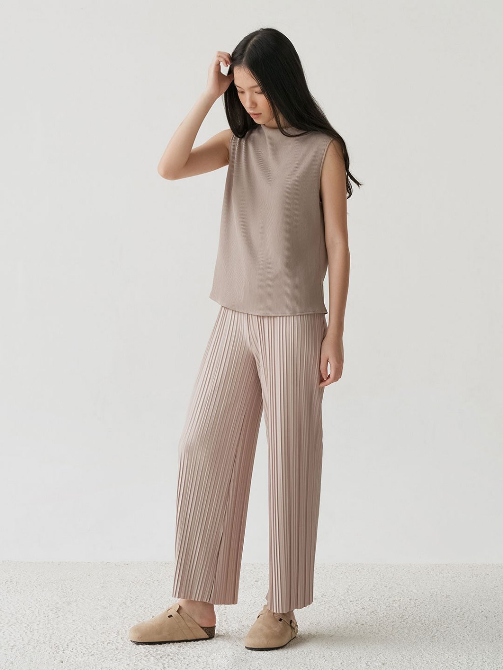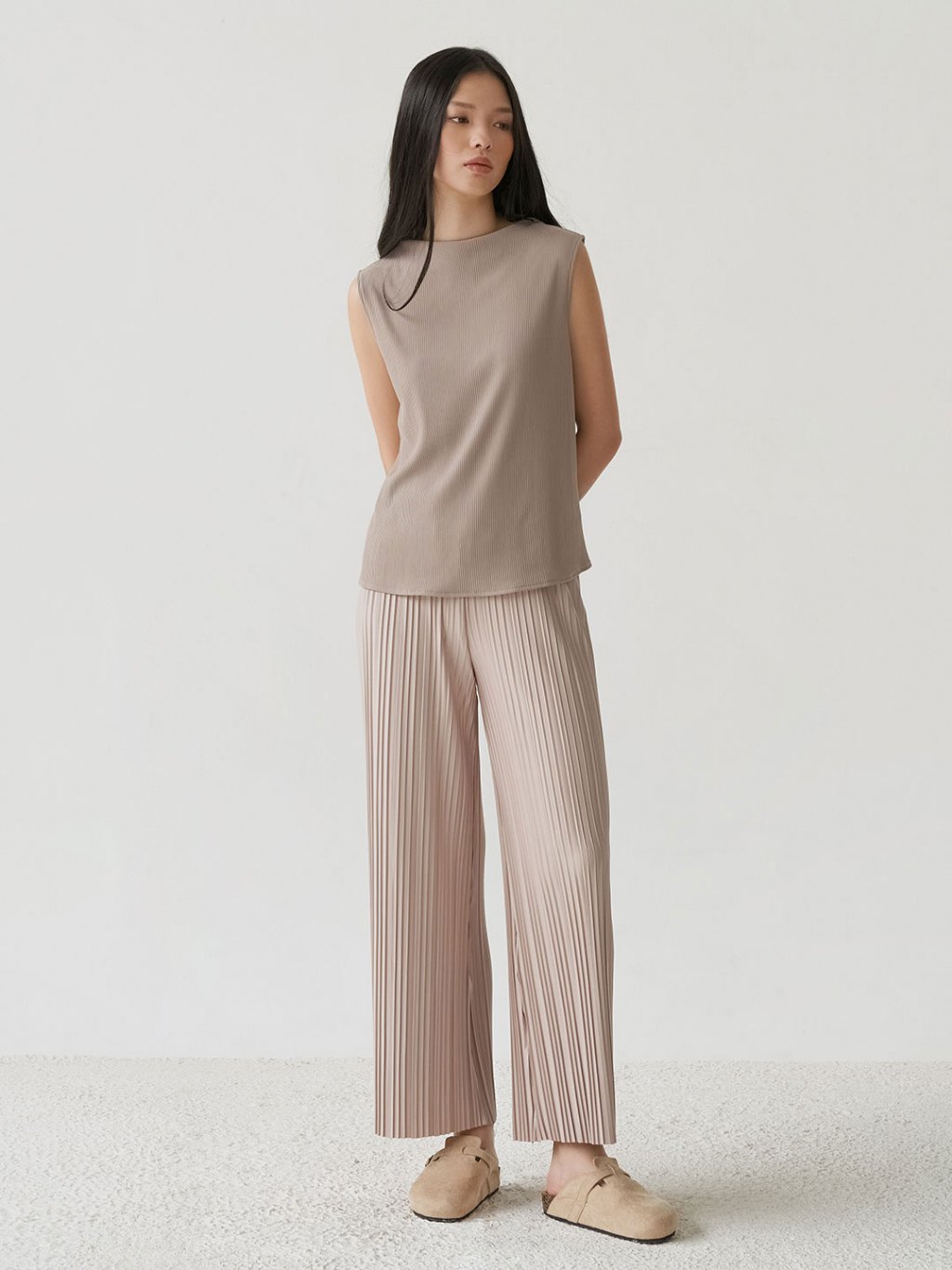 InKano Moss - Celana panjang Wanita pleated dengan full pinggang karet