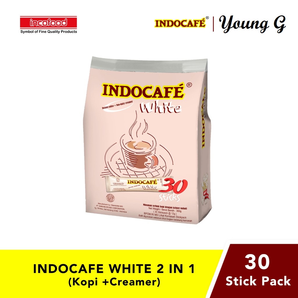Indocafe White Coffee 30 Sticks No Sugar / Kopi Putih Bebas Gula