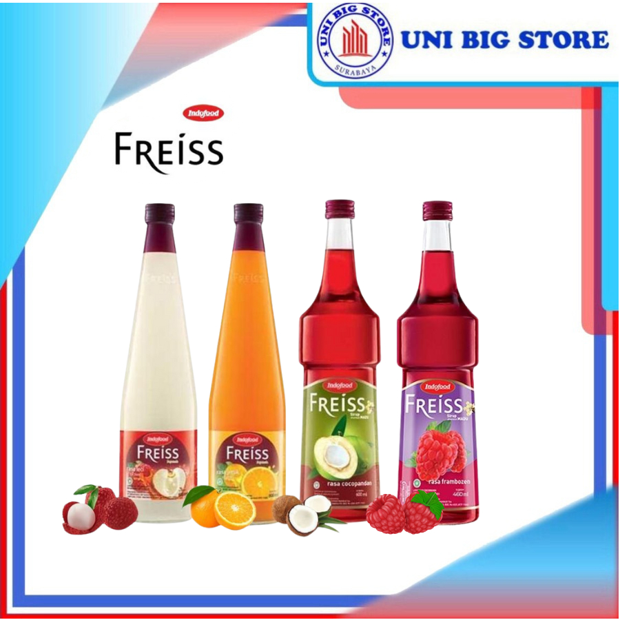 Indofood Sirup Squash Freiss Orange Lychee Syrup 460 ml Jeruk Leci Cocopandan Frambozen
