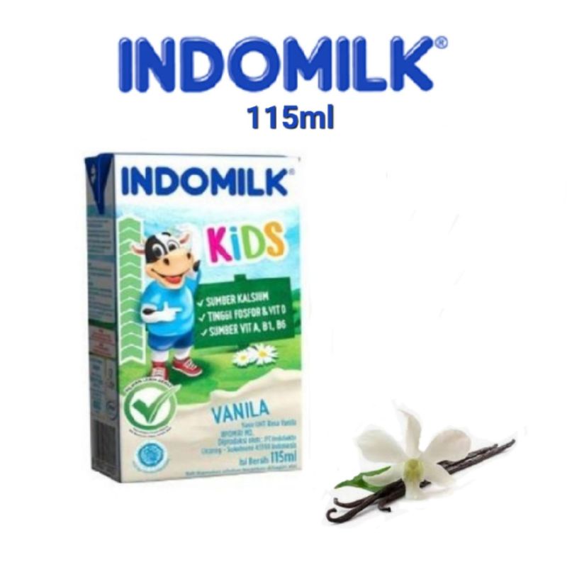 Indomilk Kids (Pcs) 115ml / Susu UHT Indomilk / Susu cair kotak anak / Indomilk Fullcream Vanila Cokelat Stroberi
