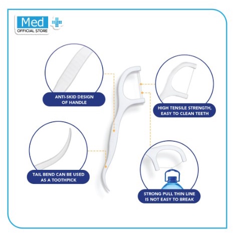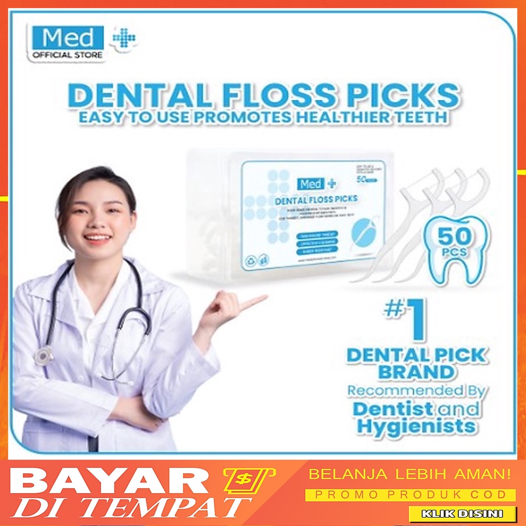 MED+ Tusuk Gigi 1Pack isi 50pcs/Dental Floss Benang Gigi Pembersih Sela Gigi