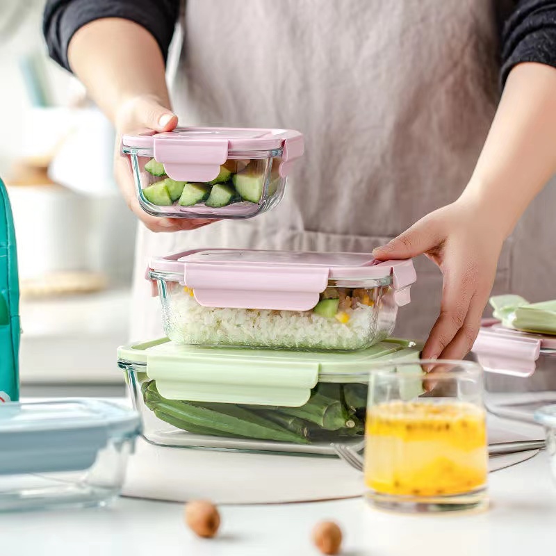 99KHOME Kotak Bekal Makan Kaca Tahan Panas Transparan Glass Bento Lunch Box H416