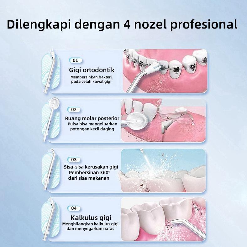 4 IN 1 Electric Oral Lrrigator Water Flosser (3 mode + 4 nozel) Portable Pembersih Gigi Listrik Penghapusan alat pembersih karang gigi Mini Water Floss