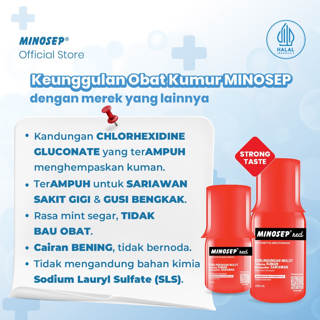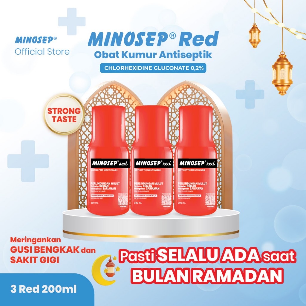 Minosep RED Obat Kumur Antiseptik Obat Sariawan PUASA Ampuh Cepat Sembuh Gusi Bengkak Nyeri Sakit Gigi 3 botol