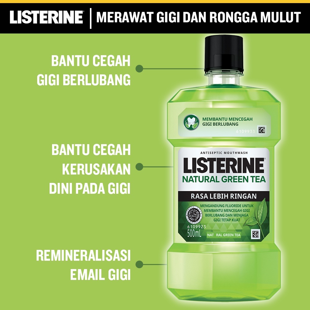 LISTERINE Green Tea Antiseptic Mouthwash / Obat Kumur Antiseptik - 500ml No Alcohol - Isi 3