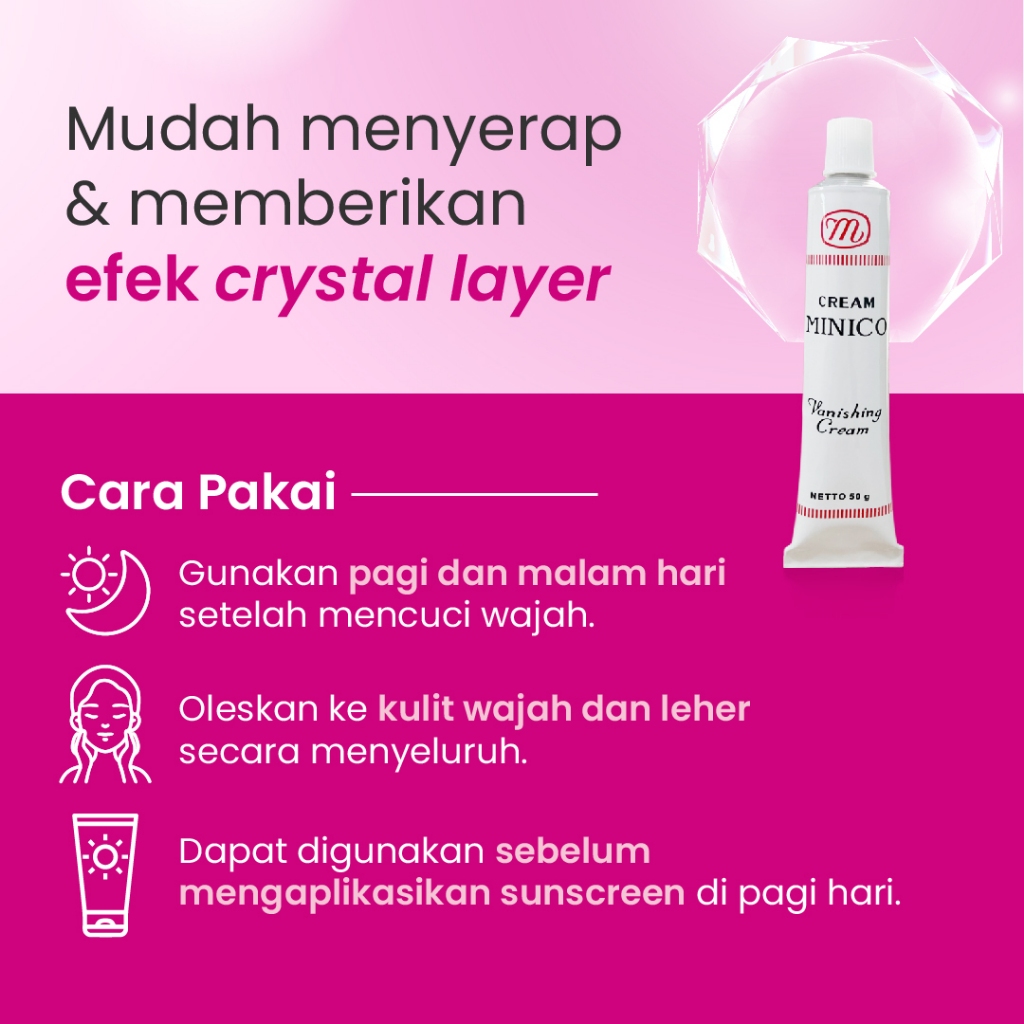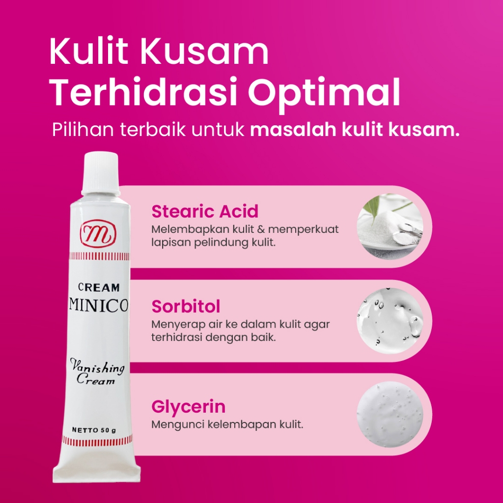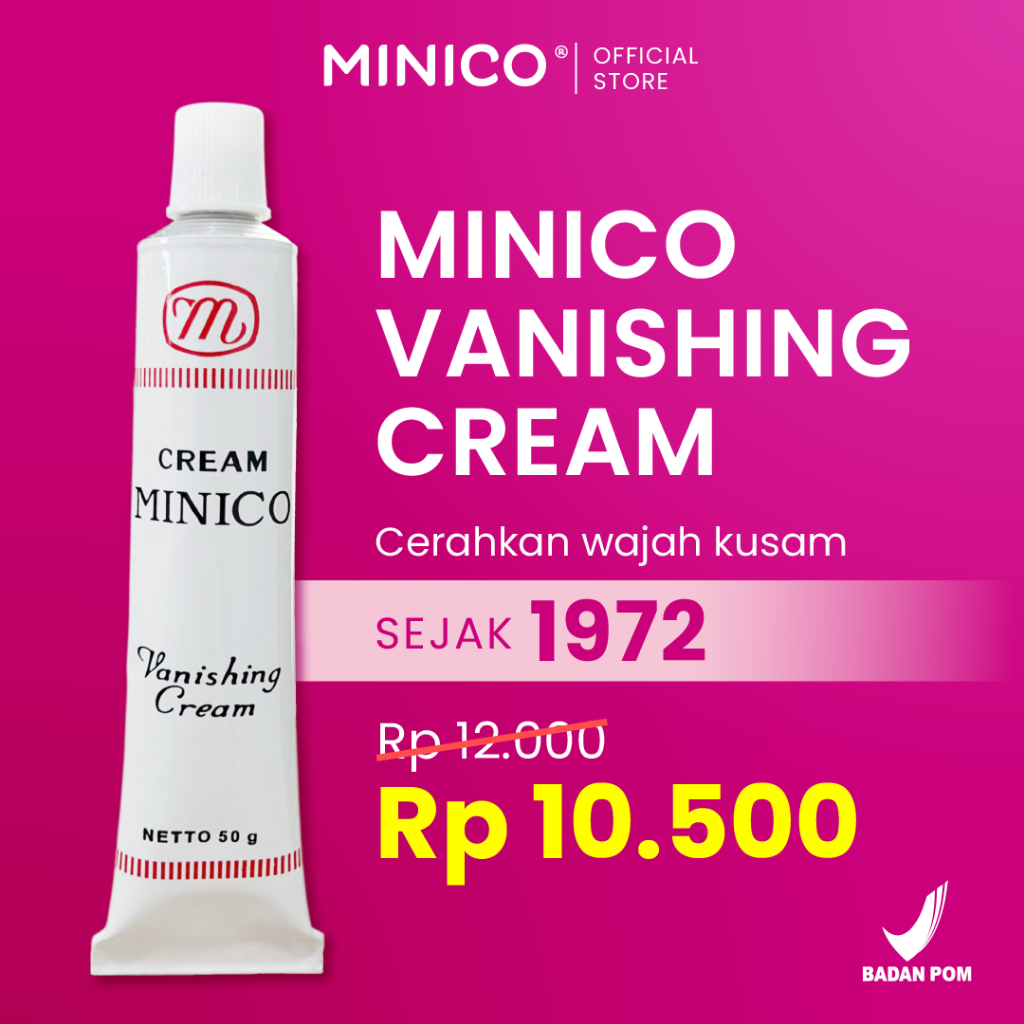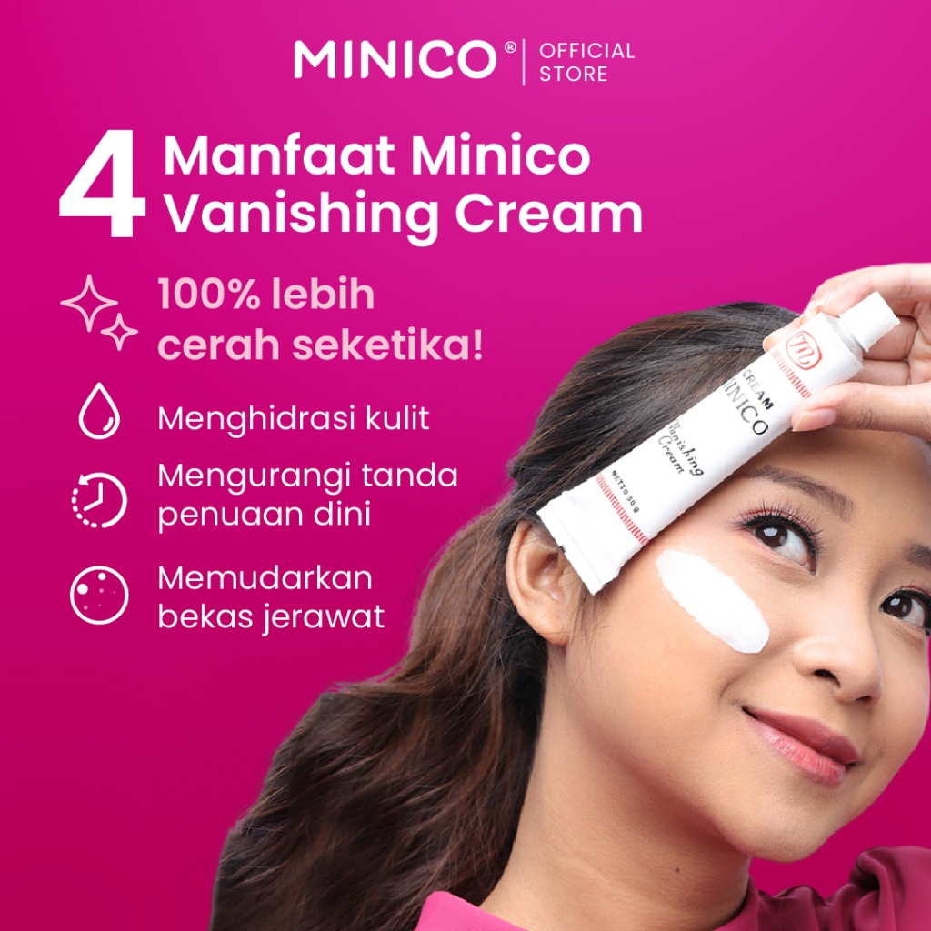 Minico Vanishing Cream Tone Up BPOM Krim Pelembab Alas Bedak Kulit Kusam Jerawat Glowing Kering