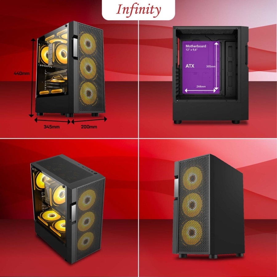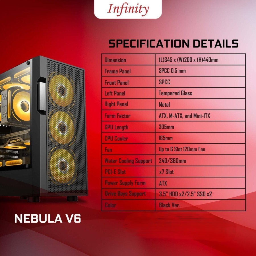 Infinity Nebula V6 Black Include 3 Fan RGB | Casing PC ATX | Case CPU Gaming