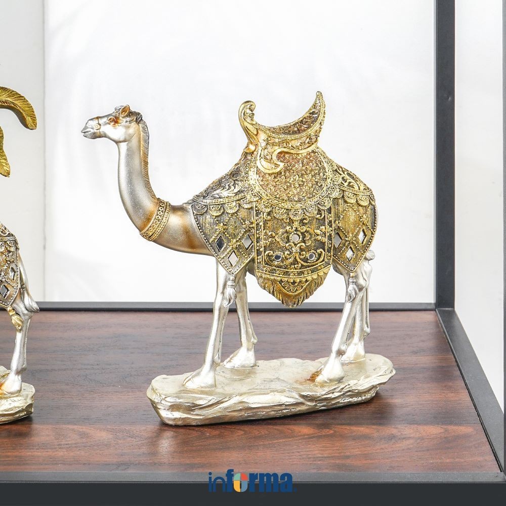 Informa 23 cm Patung Miniatur Unta Egypt 5F - Gold Patung Pajangan Meja Dekorasi Hewan Hiasan Rumah Figurin