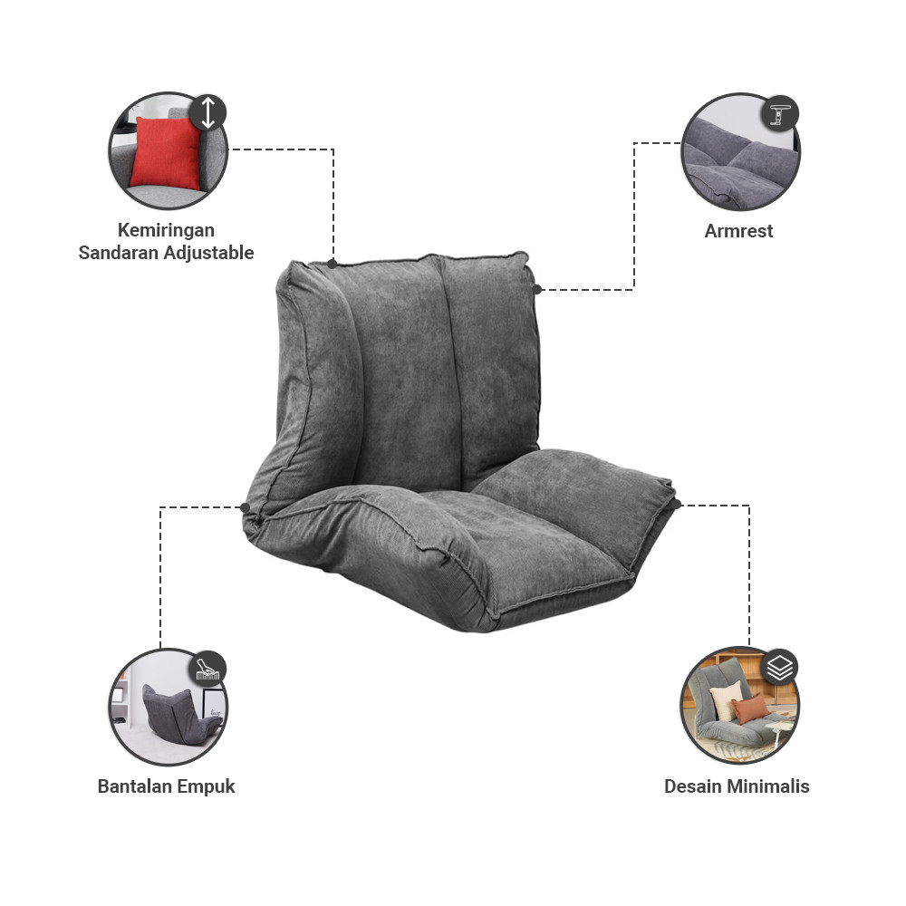 Informa Haven Kursi Lesehan Lipat Anak Fabric - Abu Abu Floor Folding Chair Furniture Indoor Rumah
