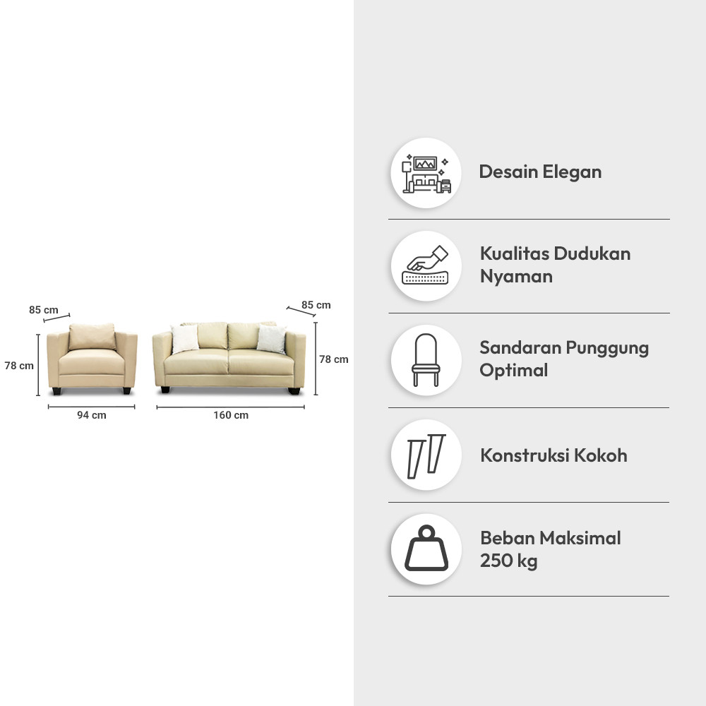Informa Venien Set Sofa Kulit - Cokelat Cappuccino Tempat Duduk Empuk Sofa Ruang Tamu Furniture Indoor Rumah Couch Kursi Tamu Bangku Santai Perabot Ruang Keluarga
