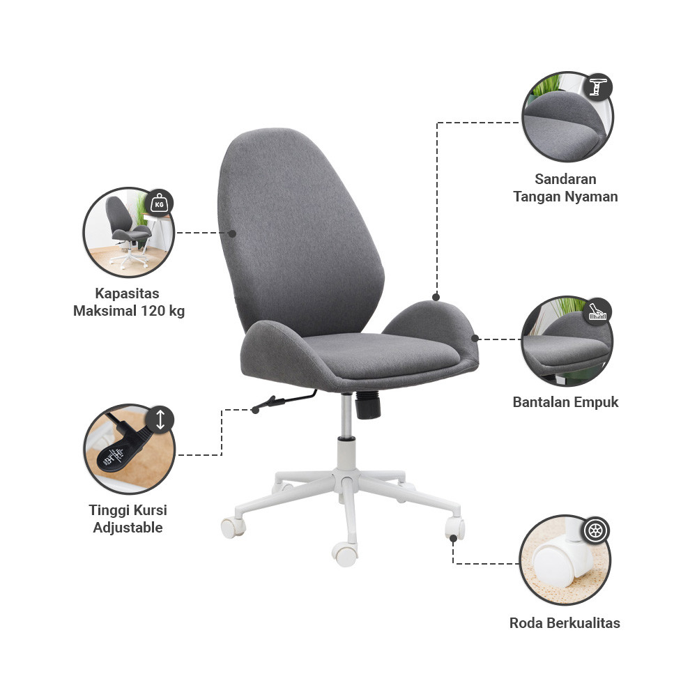Informa Zarina Kursi Kantor - Abu-Abu Tempat Duduk Kerja Dengan Roda Office Chair Kursi Staff Karyawan Furniture Indoor Kantor