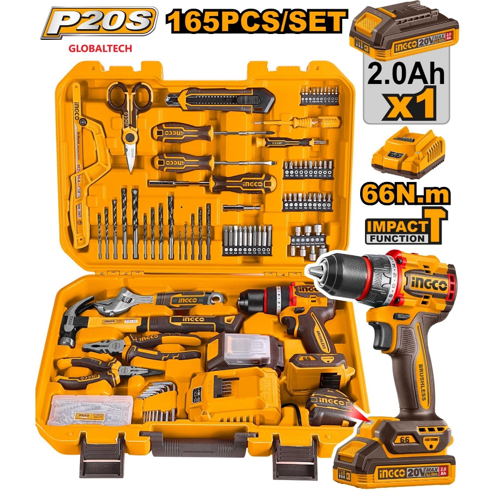 INGCO HKTHP11651 TOOLS SET 165PCS TOOLSET CORDLESS DRILL SET TOOL SET
