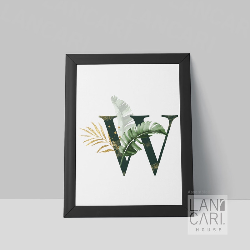 Inisial Art W Dekorasi Nama Wedding Name Sign Monstera Pigura Dinding Hiasan Ruangan Wallpaper Rumah