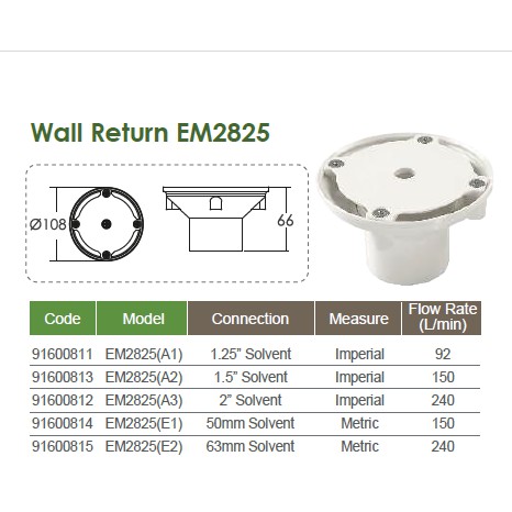 Inlet Fitting Perlengkapan Kolam Renang Wall Return Emaux EM2825(A3) EM2825 (A3)