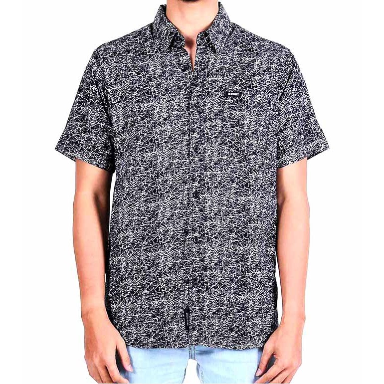 Insight Kemeja Pria Lengan Pendek Hitam Cross Over Shirt IS913104-BLK Planet Surf