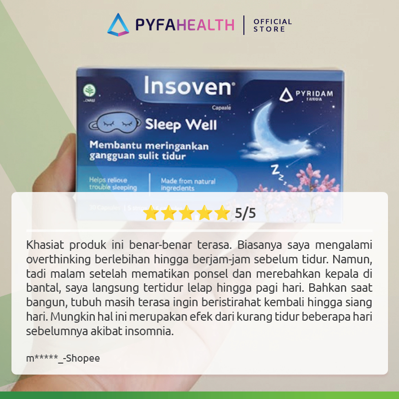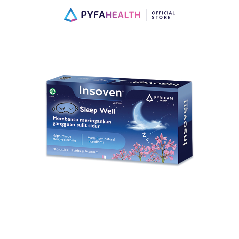 INSOVEN | Suplemen Herbal dengan Ekstrak Tanaman Herbal Rafuma untuk Membantu Meringankan Gangguan Sulit Tidur | 30 Kapsul | Halal dan BPOM Register