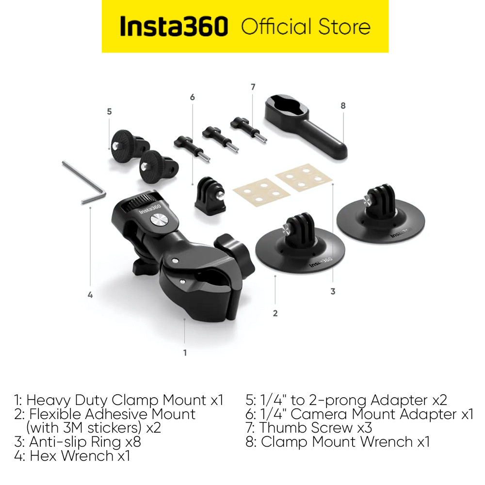 Insta360 Motorcycle Mount Bundle Aksesoris MotoVlog Clamp + Flexible Mount