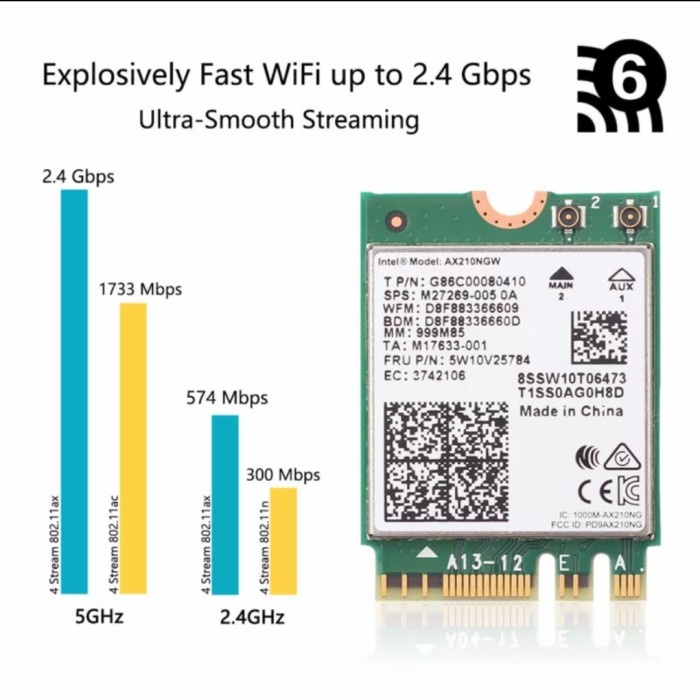 Intel AX210 WiFi Wi-Fi 6E 6 E Module Network Card Adapter 802.11ax M.2 - Module Laptop