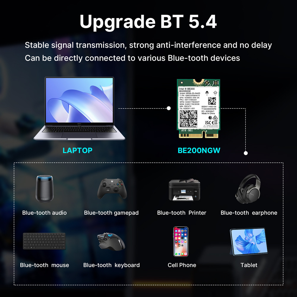 Intel BE200 WiFi 7 BE200NGW Tri-Band NGFF WiFi7 Adapter Bluetooth 5.4 M.2 Wireless Wi-Fi Dongle For PC/Laptop For Win10/11 upgrade from AX210 AX200