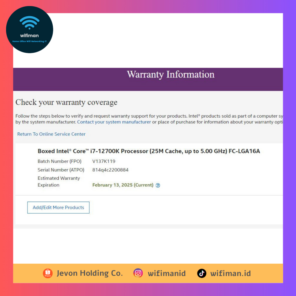 Garansi tiba 26 Mar