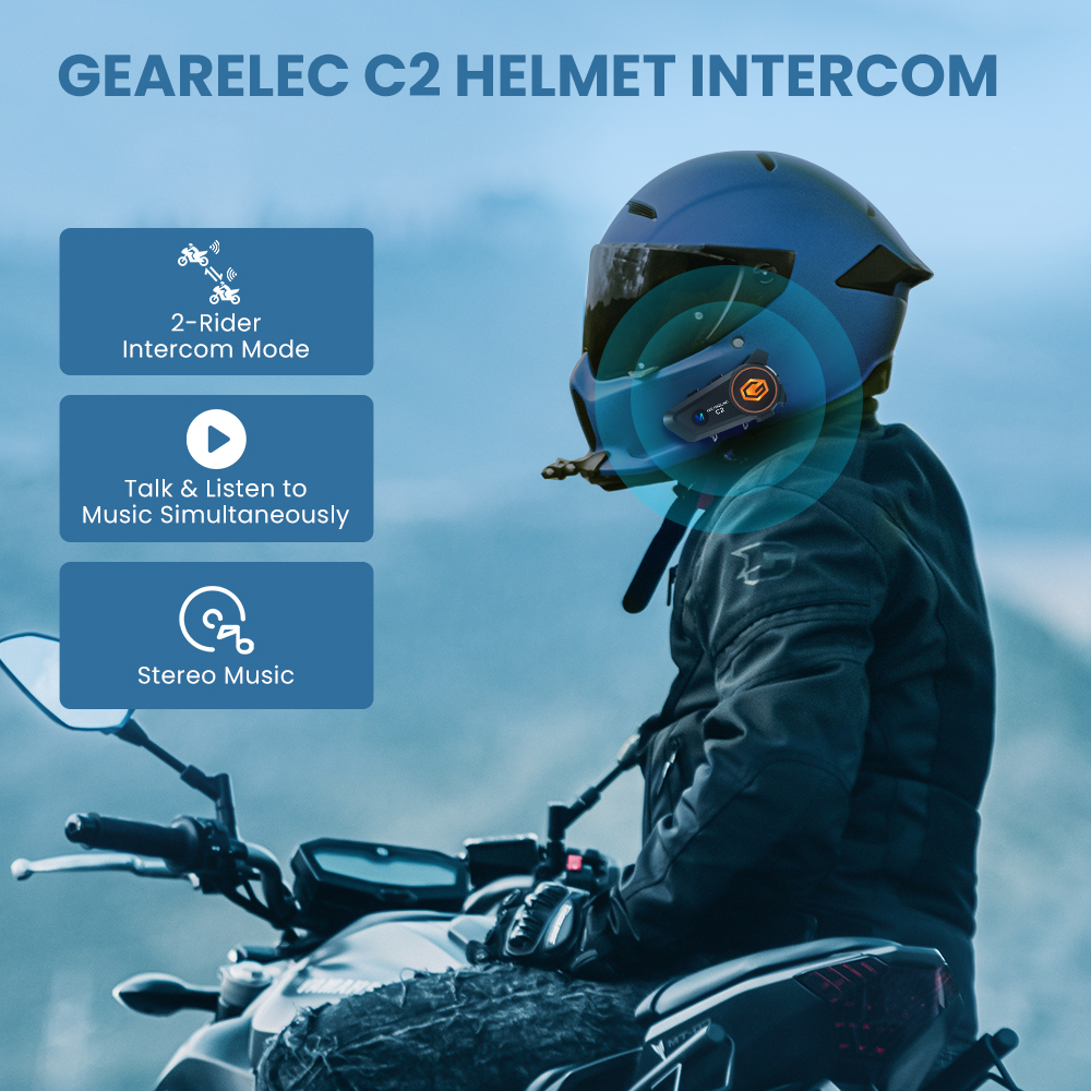 Intercom GEARELEC C2 BT5.3 Helm Sepeda Motor 2 riders 50m Bluetooth Interkom IPX7 waterproof 2800mAh
