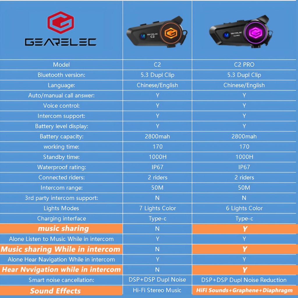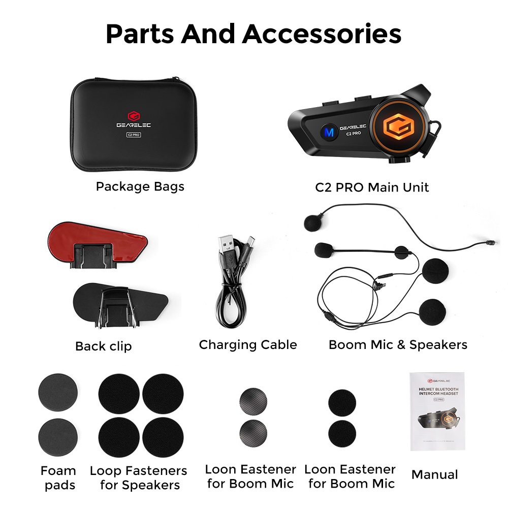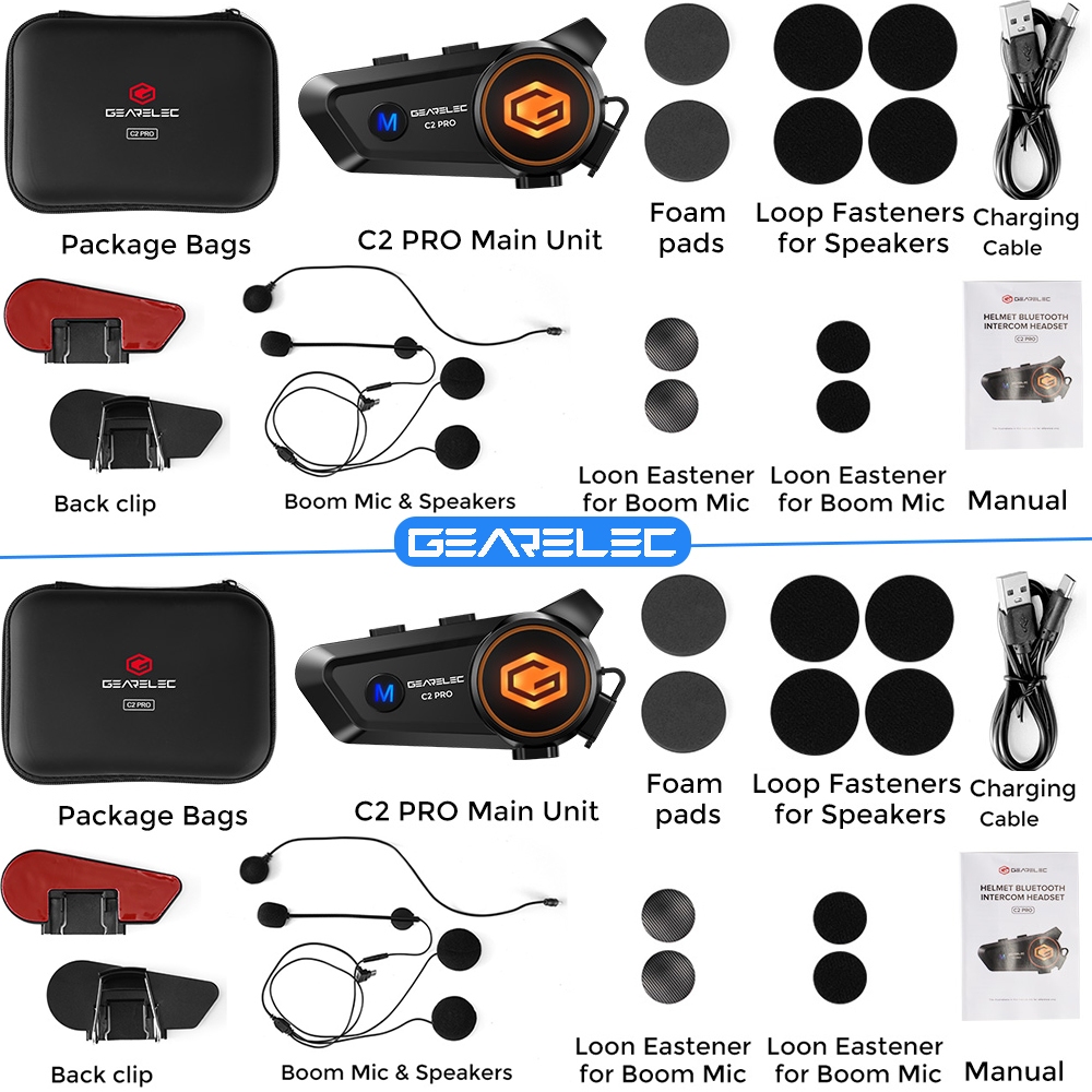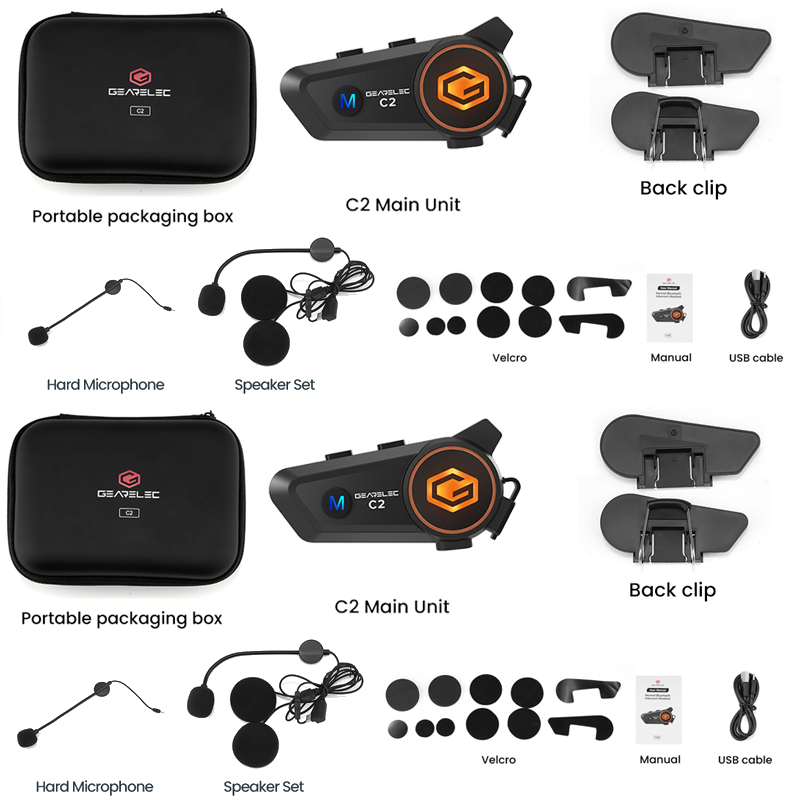 Intercom GEARELEC C2 BT5.3 Helm Sepeda Motor 2 riders 50m Bluetooth Interkom IPX7 waterproof 2800mAh