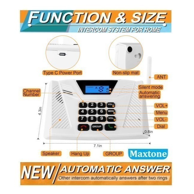 Intercom wireless interkom 2 arah bicara tanpa kabel Tanpa Pencet Pencet Tombol Auto Talk Full duplex wireless intercom 2 way MAXTONE SK1209 - Paket 1 Unit