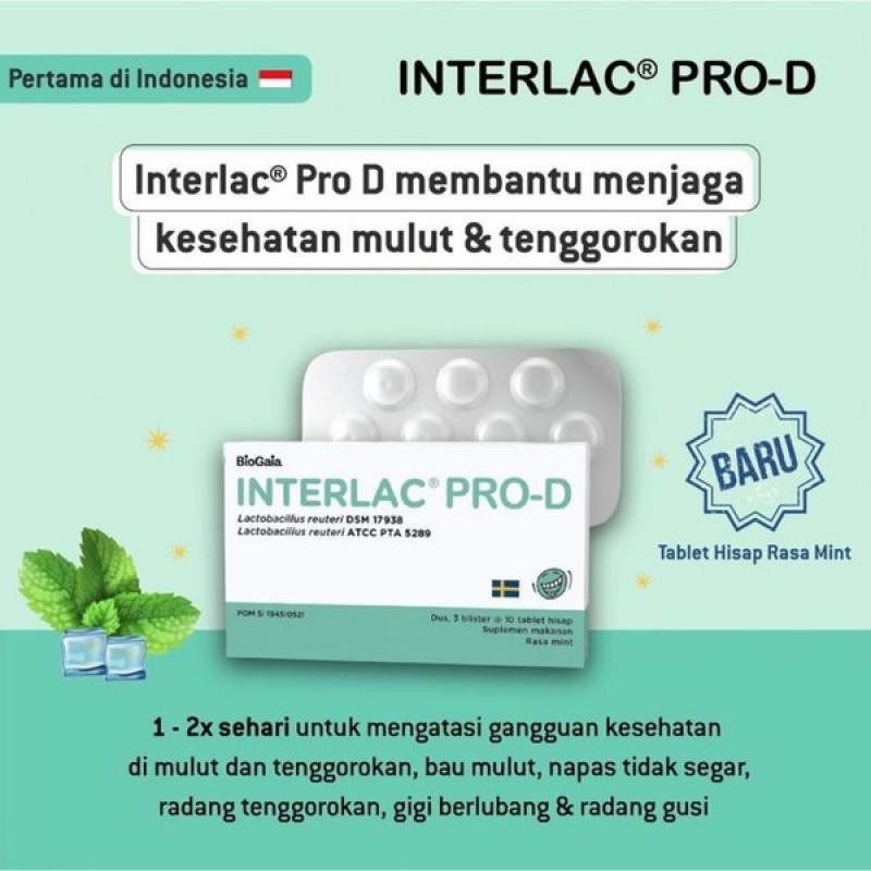 Interlac Pro D Lozenges Tablet Hisap Probiotik Mint 1 Strip 10 Tablet