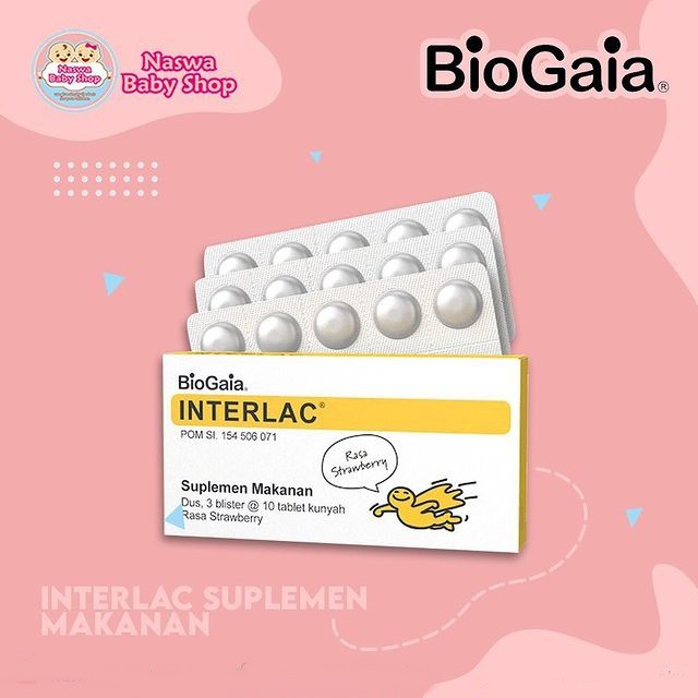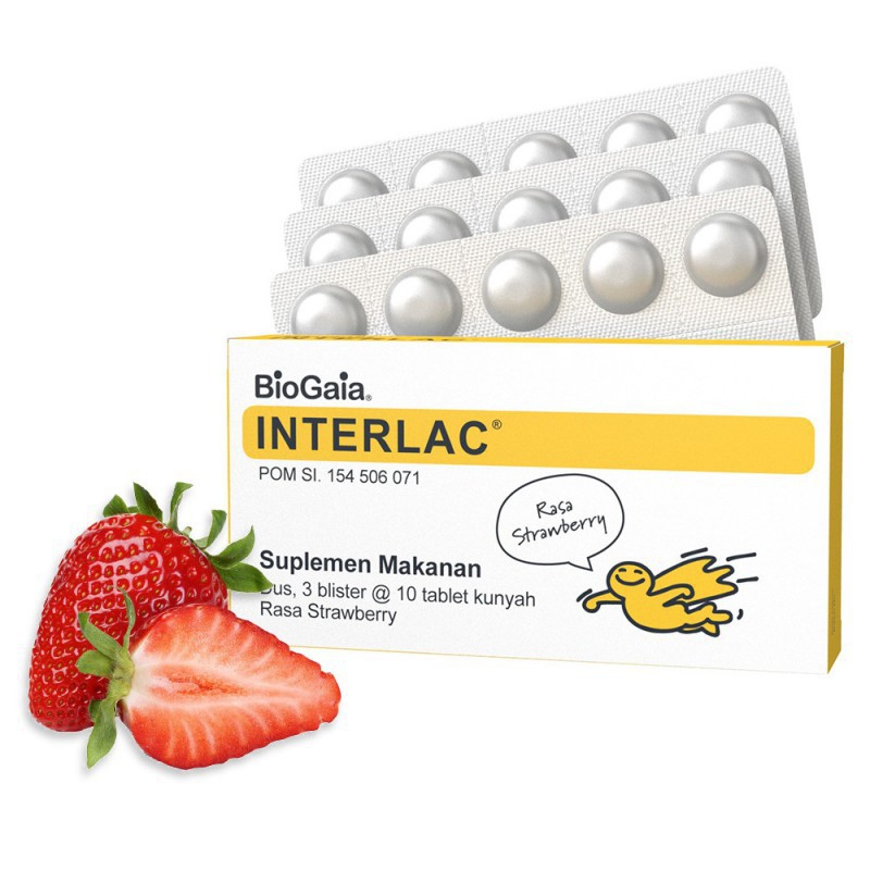 Interlac Probiotic Suplemen Tablet Kunyah Strawberry Isi 30 Tablet | 1 Blister Isi 10 Tablet