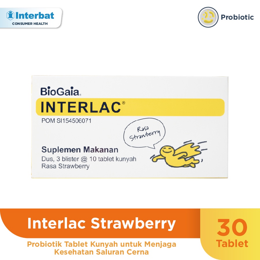 Interlac Probiotik Tablet Kunyah Strawberry - 3 Strip @ 10 tablet
