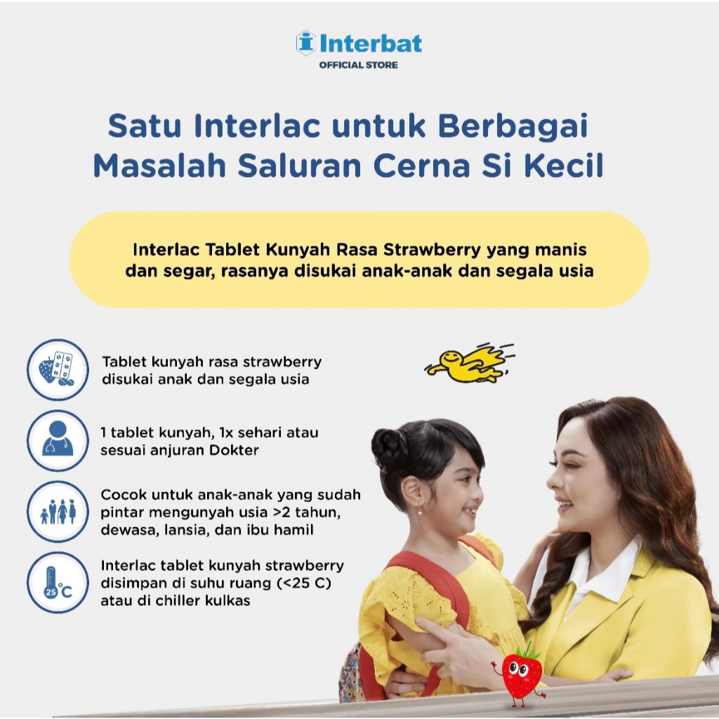 Interlac Probiotik Tablet Kunyah Strawberry isi 30 tablet