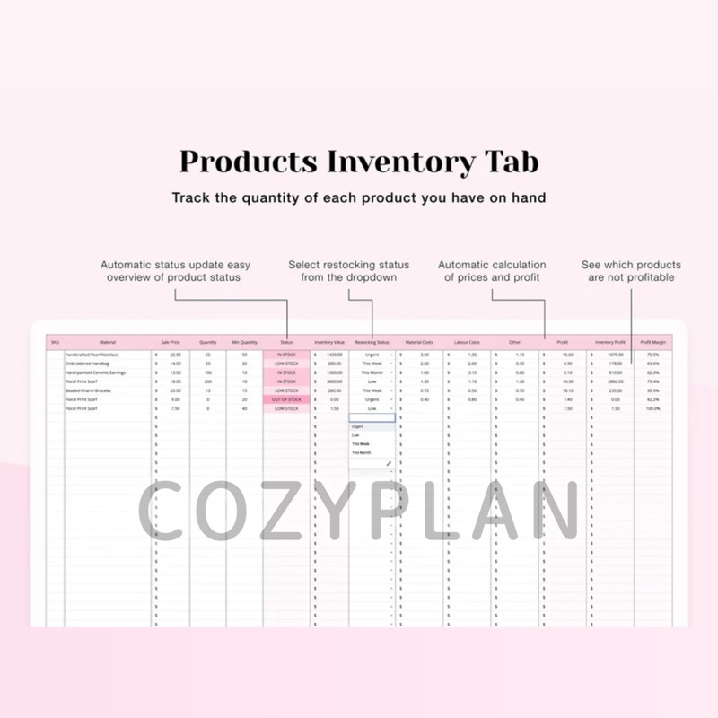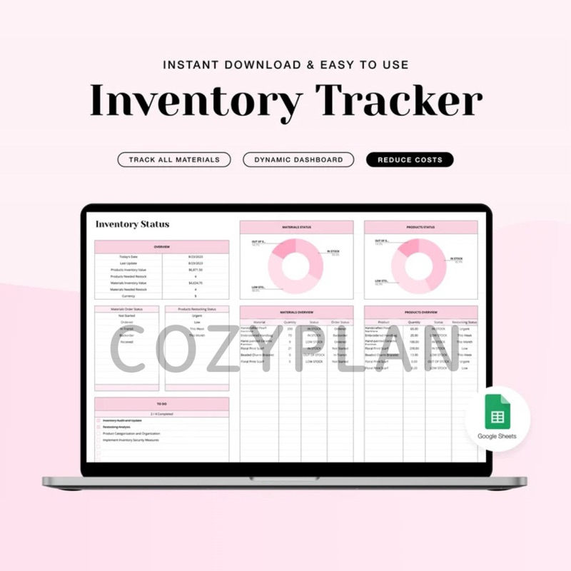 Inventory Management for Google Spreadsheet, Inventory Tracker Sheet, Small Business Spreadsheet, Material & Product Inventory Google Sheets - CP47