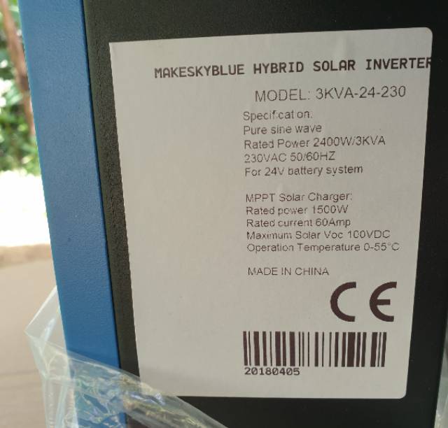 Inverter hybrid Offgrid Makeskyblue 3000VA 24V MPPT 60A