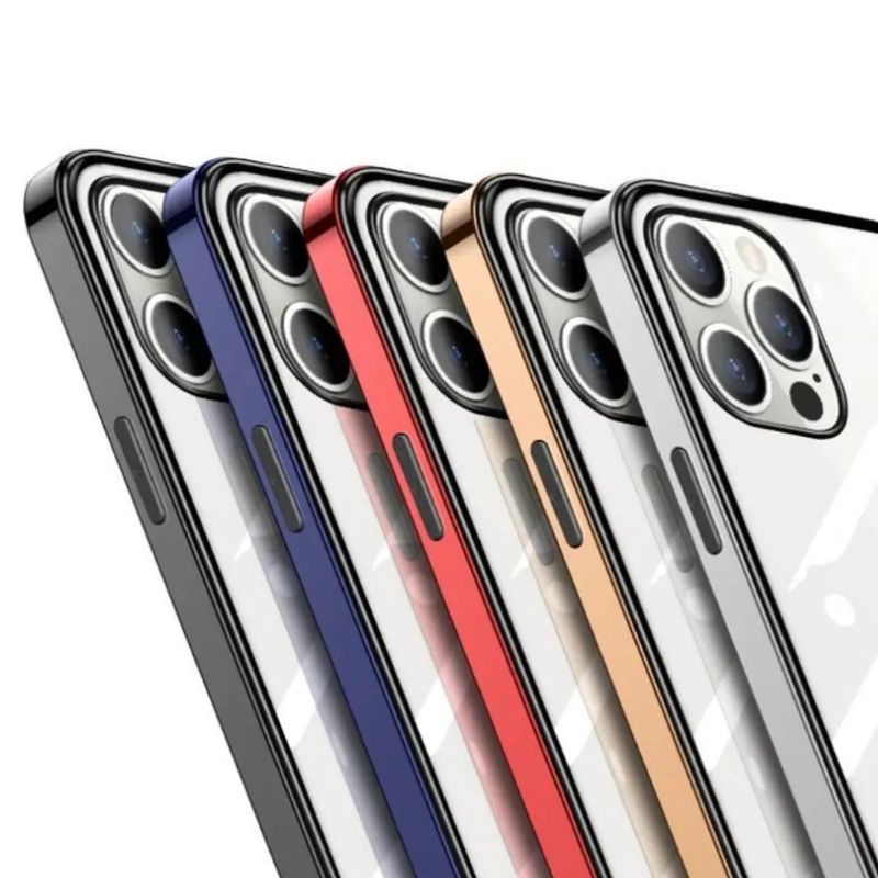 Iphone 12 Pro 12 Pro Max Silikon Metalic Bumper Case Tempered Aluminium Clear