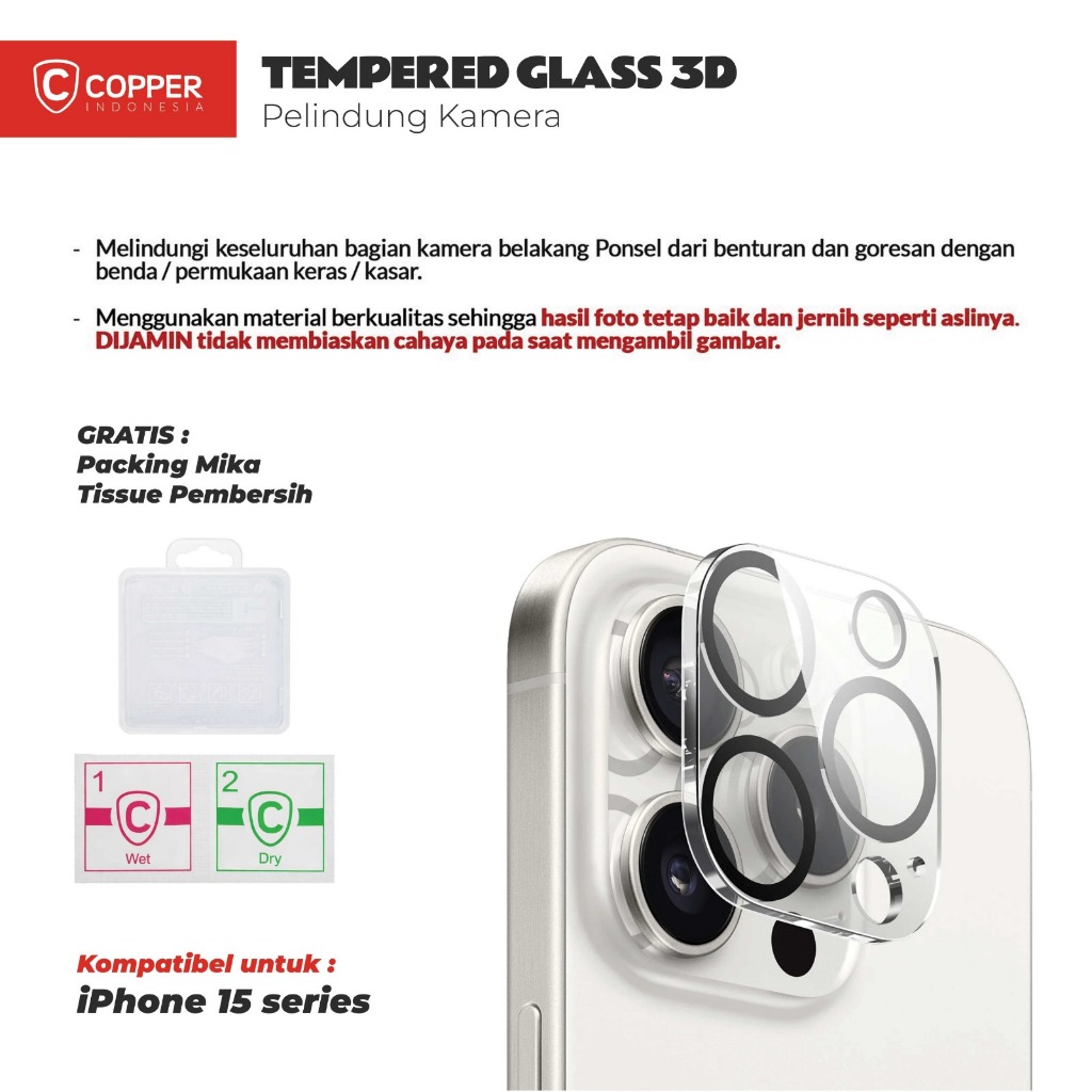 Copper Compatible For Iphone 15/Plus/Pro/Pro Max - Tempered Glass Kamera Premium