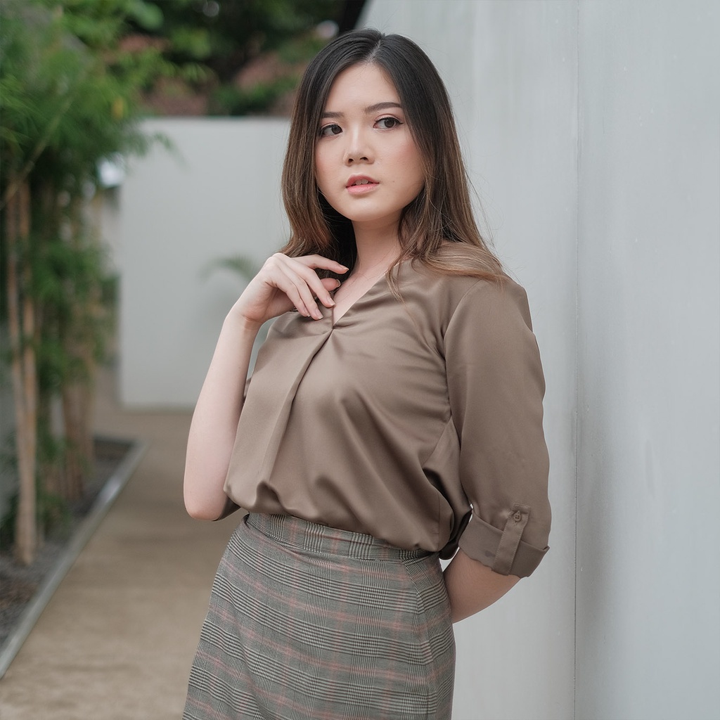 Irui Kemeja Lengan 3/4 Wanita Satin Akira Green