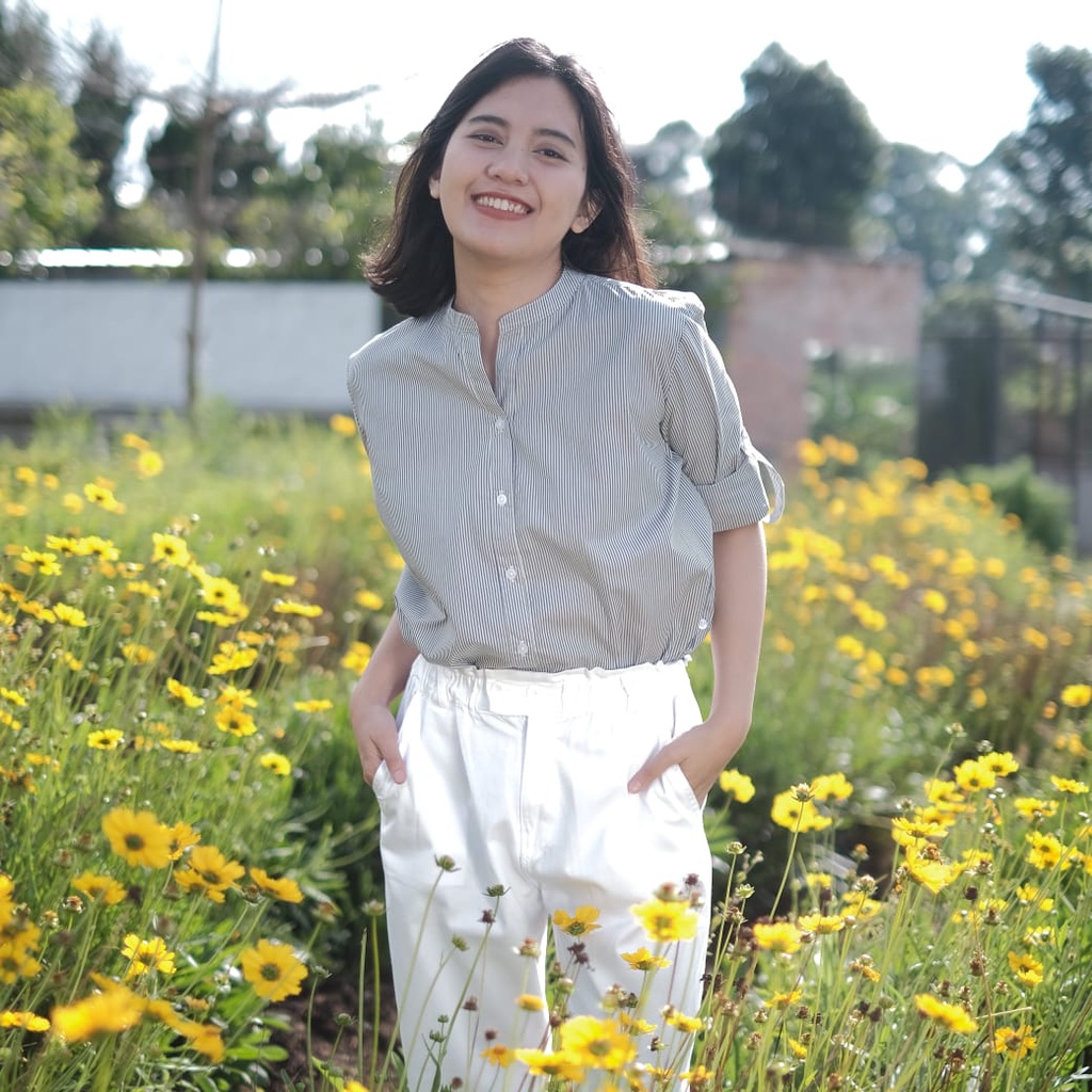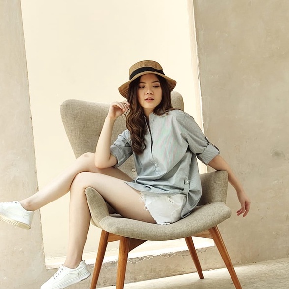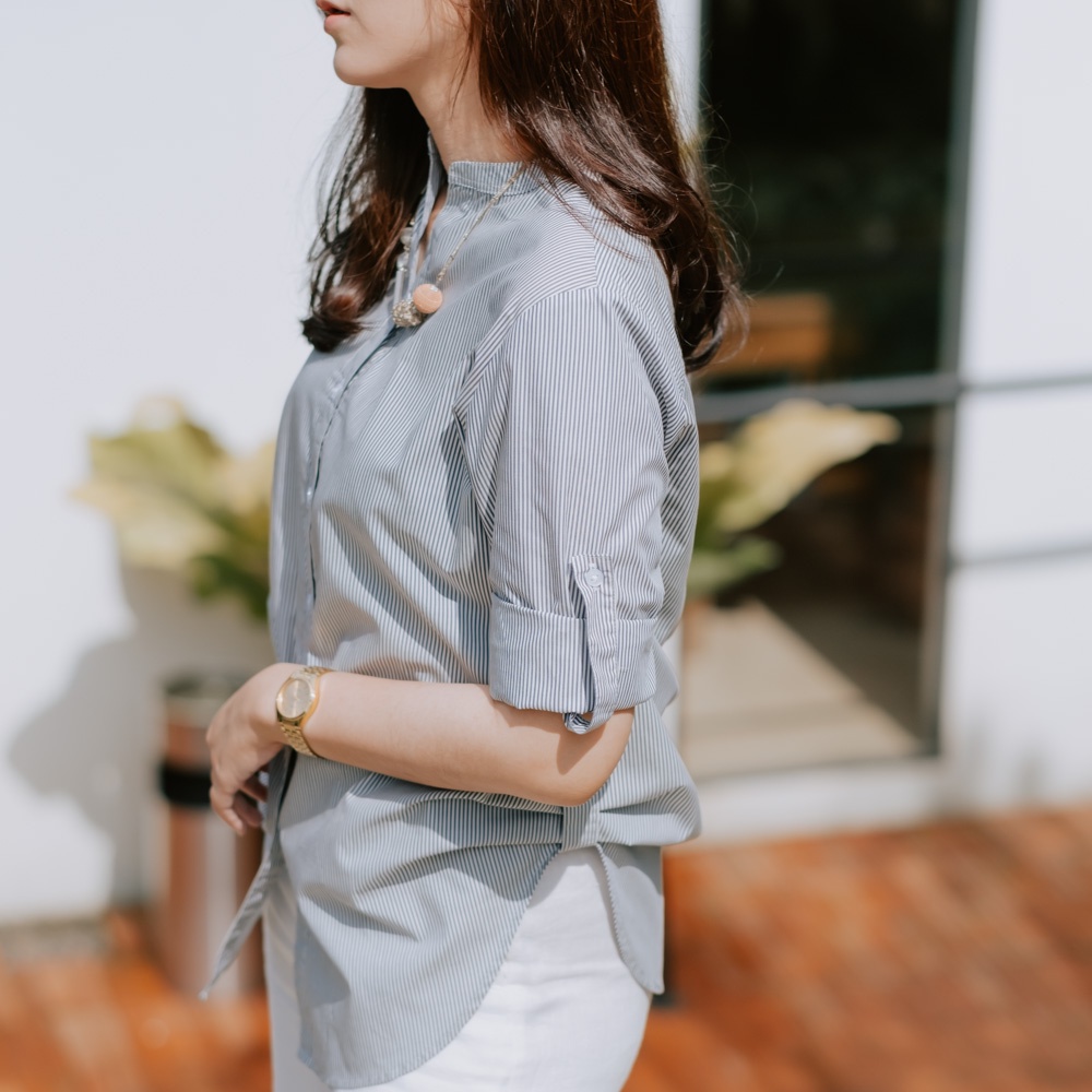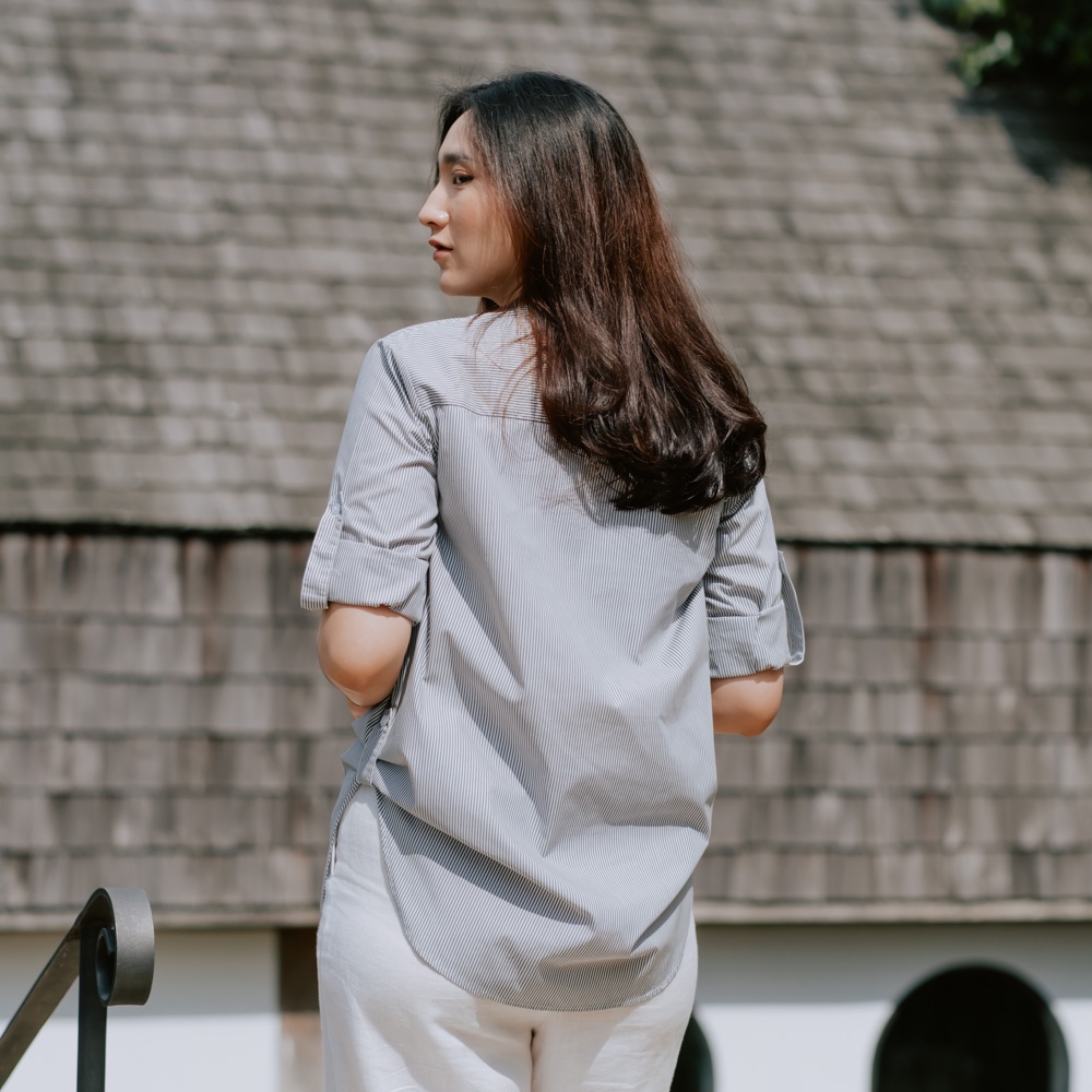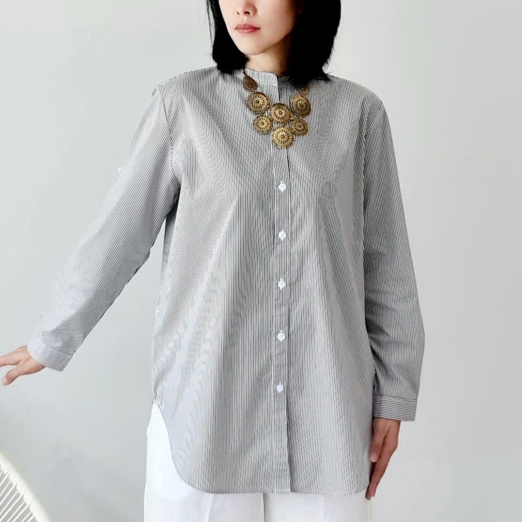 Irui Kemeja Lengan Panjang Wanita Katun Chinami Stripe