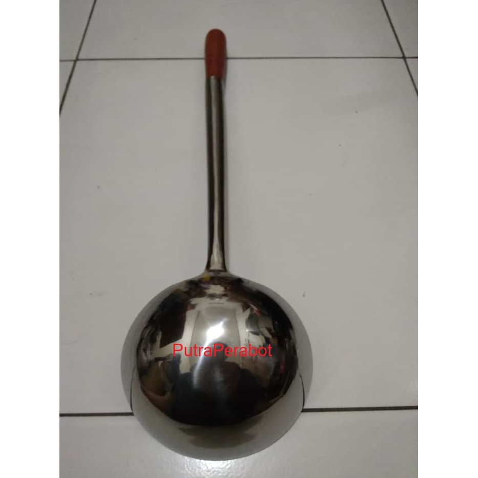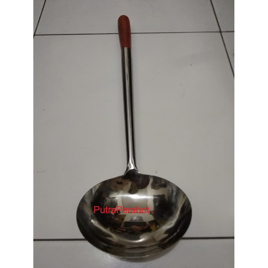 Irus / Sutil / Sodet / Spatula / Sendok Kuah Sayur / Gayung Ladle Gagang Kayu Stainless Steel Jumbo