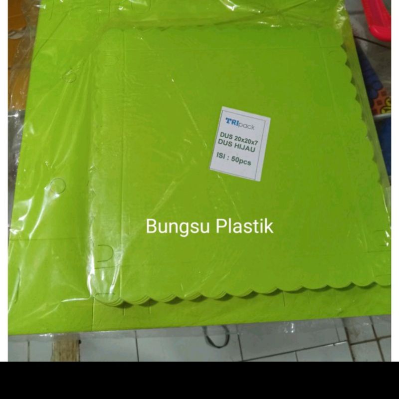 Isi 10 lembar Dus Nasi Kotak warna Hijau / Merah ,Dus snack, Dus Kue Uk 18x18 , uk 20x20 cm