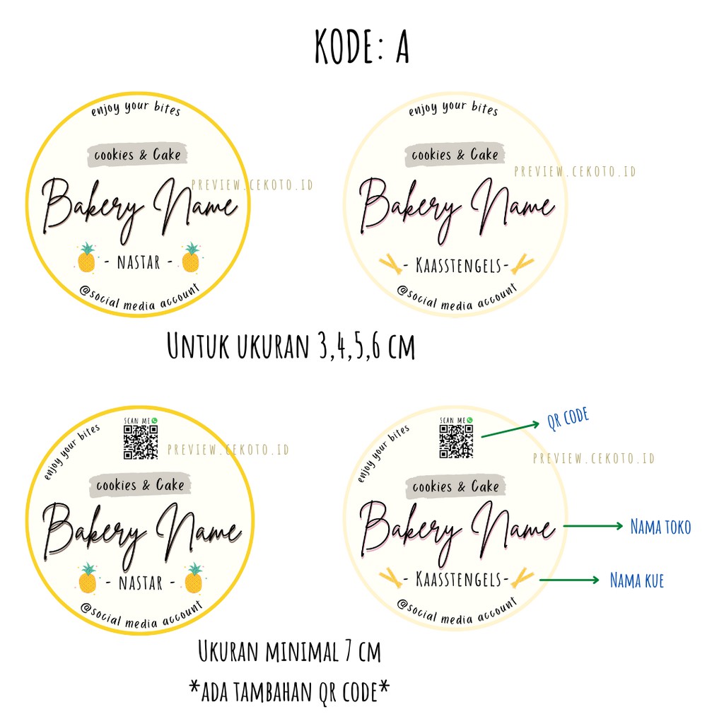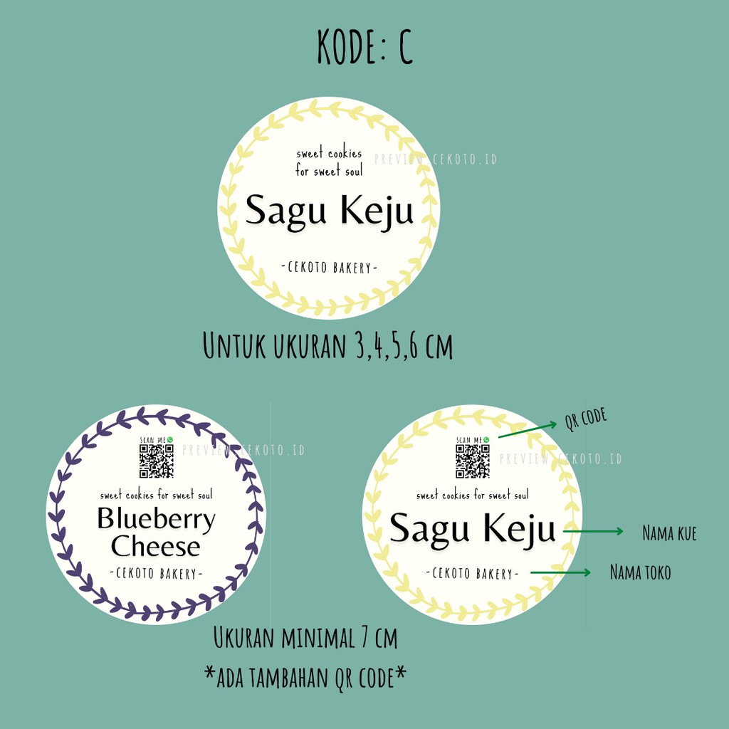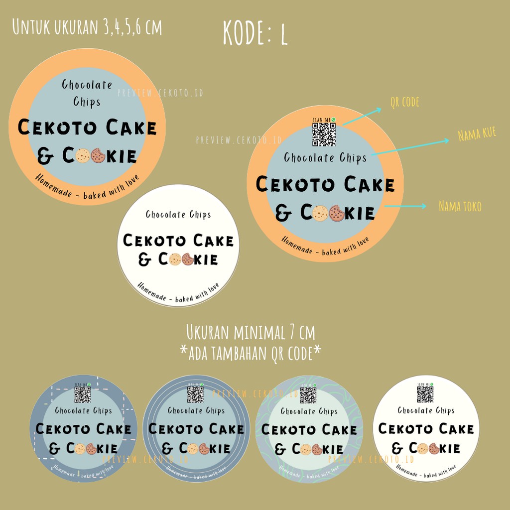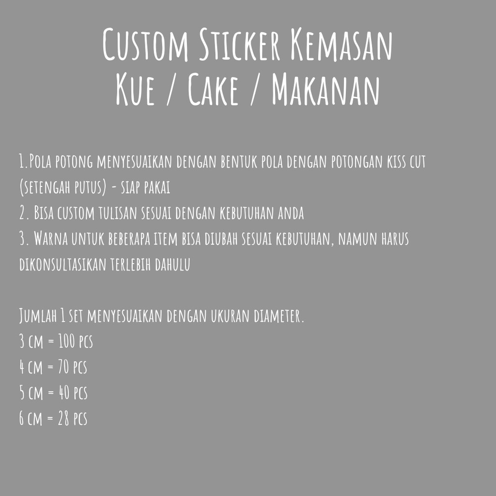 Isi 100/70/40/28 Custom Sticker Bulat - Stiker Kemasan Makanan - Label Kue / Cake / Roti / Cookies