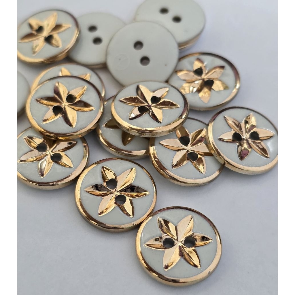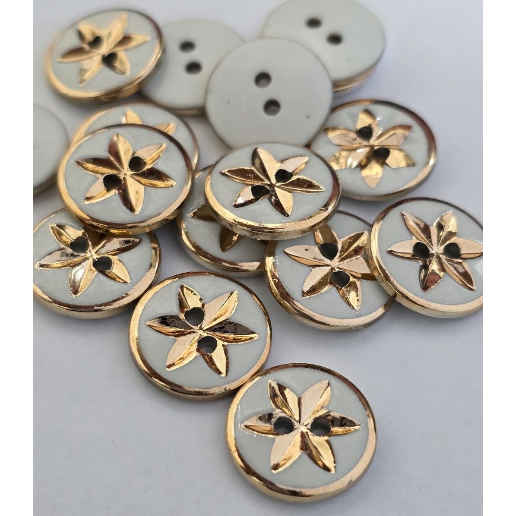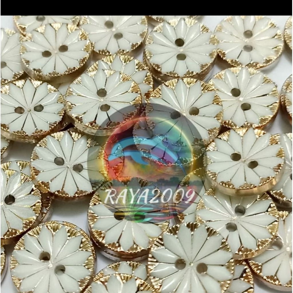 Isi 100 Pcs Kancing Baju Bunga Teratai Bunga putih Hitam Gold Kancing Size 13 mm/15mm 18 mm 21 mm