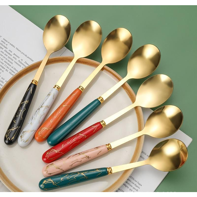 Isi 6 pcs Sendok Makan Marble Stainless Steel | Sendok Stainless Set Dengan Box Gift Hampers Souvenir Hadiah
