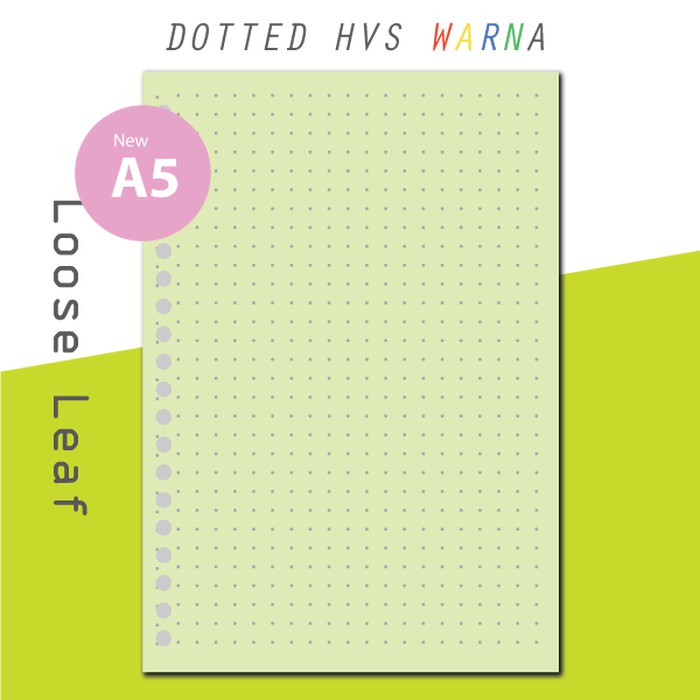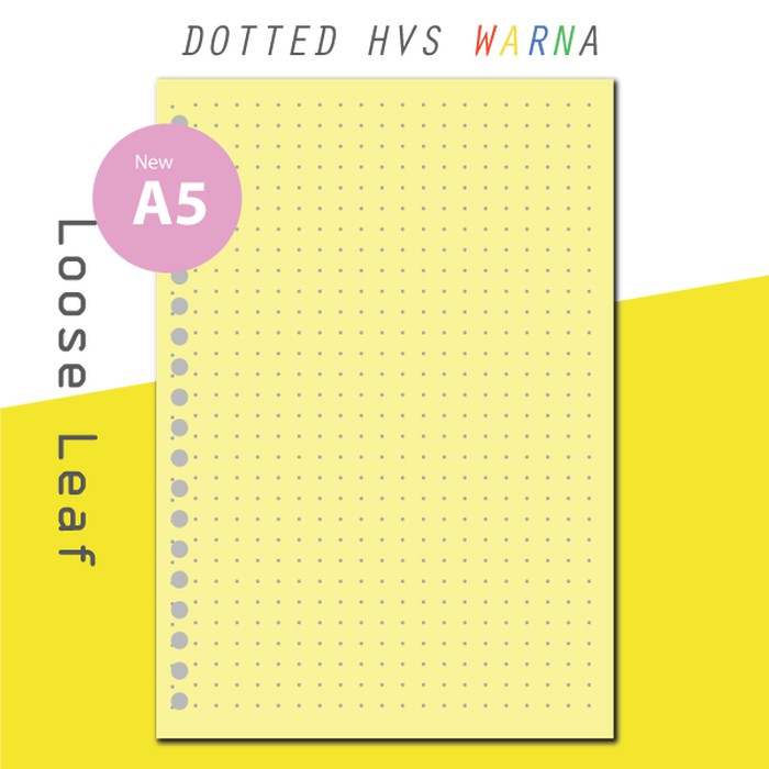 Isi Kertas Binder - Kertas File - Kertas Note Hvs Loose Leaf A5 Color - Dotted/ Grid Berwarna