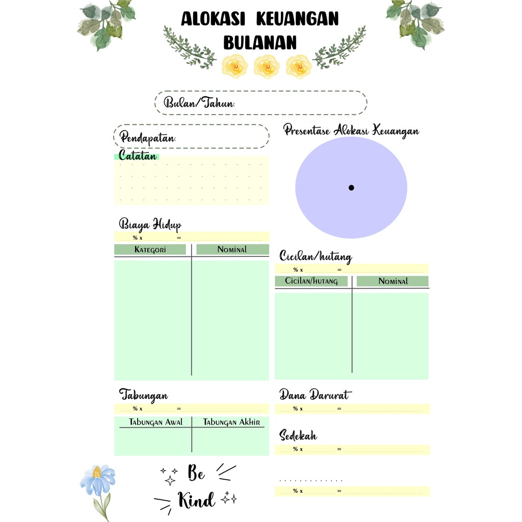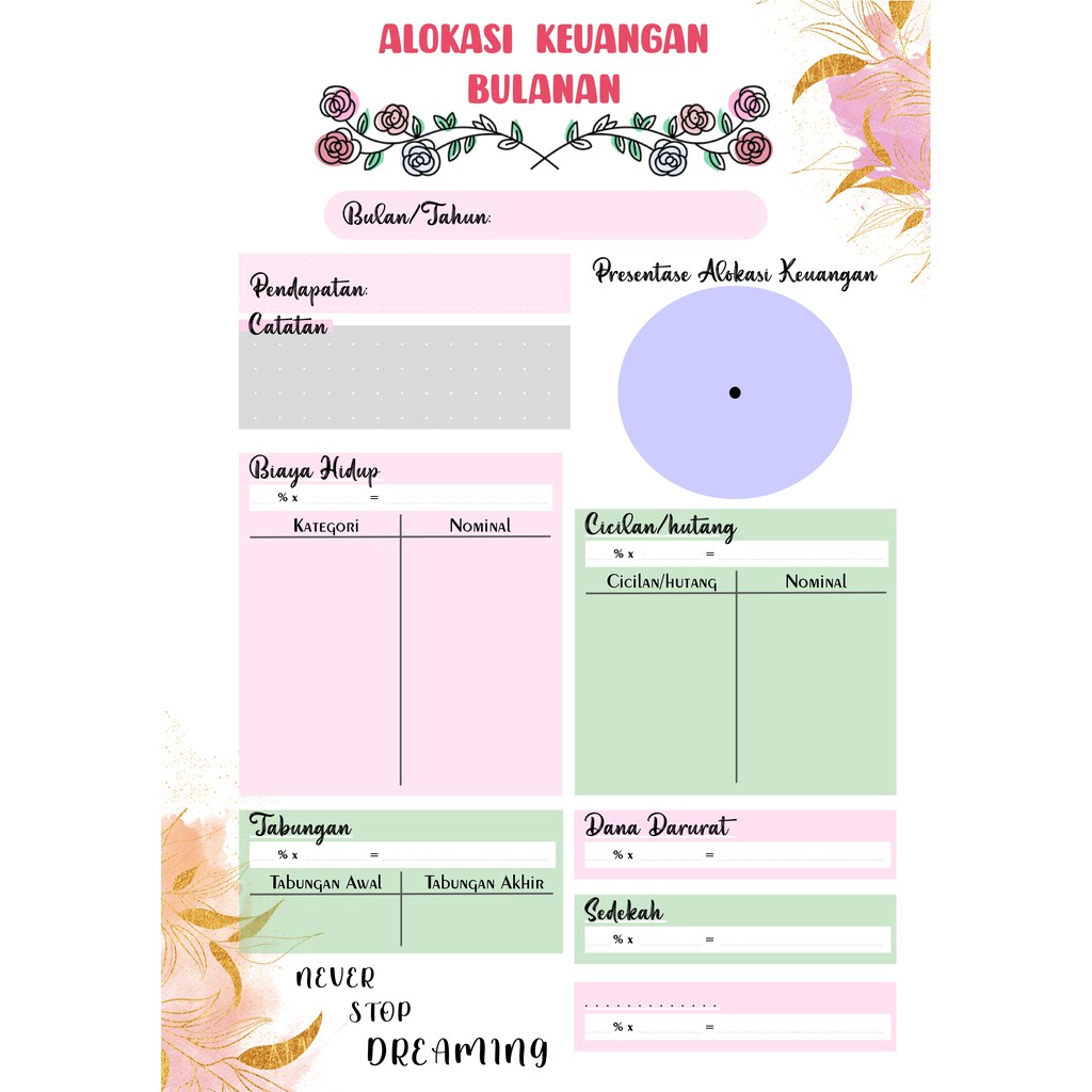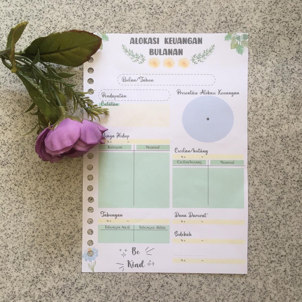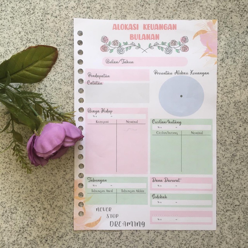 Isian Binder (HANYA KERTAS) Uang Planner Alokasi Keuangan bulanan A5