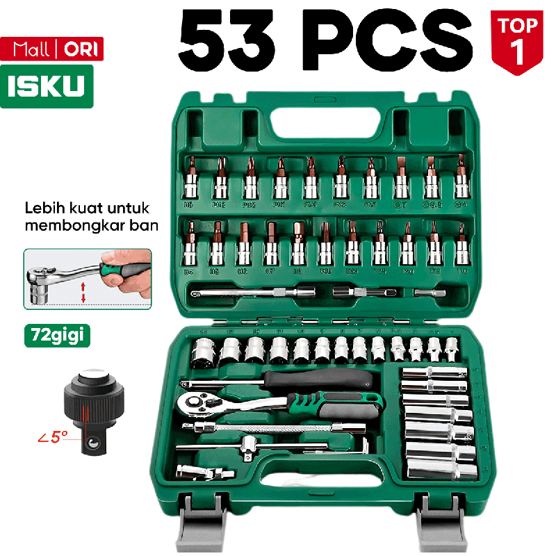 Isku Kunci Sok Set 53pcs Kunci Shock Set Lengkap Kunci Mata Sok 53 PCS Set Socket (1/4 ") Full TOOL KIT 20PCS Kunci Mata Shock Dan 21pcs Drill Bit